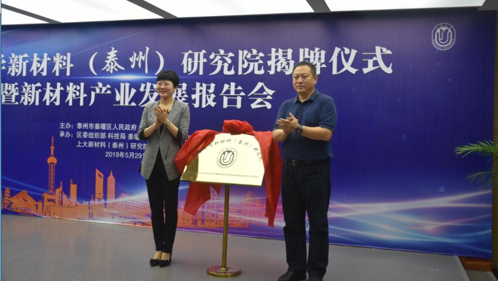 5月29日,sunbet申搏官方网站新材料(泰州)研究院揭牌仪式暨新材料产业发展报告会在江苏省泰州市姜堰区智谷软件园3楼报告厅召开。会议由姜堰区副区长杨剑主持。sunbet申搏官方网站资产经营管理有限公司总经理潘志浩,sunbet申搏官方网站组织人事部组织处副处长于伟,sunbet申搏官方网站创新管理部综合办公室主任于瑞强,sunbet申搏官方网站材料学院院长董瀚,党委委员张捷宇,副书记席慧霞,副院长韦习成,副院长李运波,国家重点实验室副主任、总支书记邵玮,姜堰区区委副书记、农业园区党工委书记孙靓靓,姜堰区组织部部长孔令明及姜堰区政府办、人才办、工信局、财政局、科技局、高新区主要负责人;科技镇长团全体成员;各镇、街道、园区分管科技负责人、科技人才助理;有关高新技术企业、科技型企业技术负责人共计100多人参加了此次揭牌仪式。
