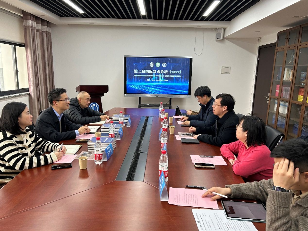 2024年3月18日下午,上海市禁毒委员会办公室主任周国庆、上海市委政法委毒品预防处处长董立武、干部王灵慧莅临sunbet申搏官方网站国际禁毒政策研究中心指导工作。