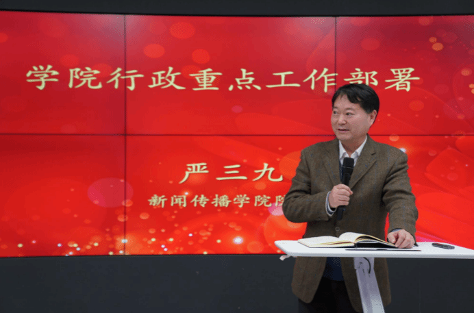学院党委副书记、院长严三九对新学期学院的重点工作进行总体部署安排。他首先欢迎三位新教师加入学院温暖的大家庭,感谢假期、开学后辛勤付出的各位老师。随后,他以“聚力之年”“提质之年”“攀登之年”这三个关键词为核心,提出2024年学院整体工作的推进思路,鼓励学院全体老师攻坚克难,共同推进快速发展。在sunbet申搏官方网站将迎接第四次党代会、新中国成立75周年、新sunbet申搏官方网站组建30周年之际,首先要做好民生工作。其次,人才培养是工作中的重中之重,全体教师要重视本科生和研究生的教育教学工作,在课程建设、教学改革、实践教学等方面认真落实,召开学院第二届本科教育教育大会。再次,加快推进国家重点实验室建设、召开学院第二届科研创新大会、首届全国新闻学大会。最后,抓好学院国际化工作与就业工作、安全工作与宣传工作等。在聚力、提质、攀登之年,全院师生要聚心增强合力、聚智解决问题、聚力内涵发展,凝聚团结之力,提质增效发展,攀登新的高峰,为学校双一流建设作出新闻传播学院新的贡献。