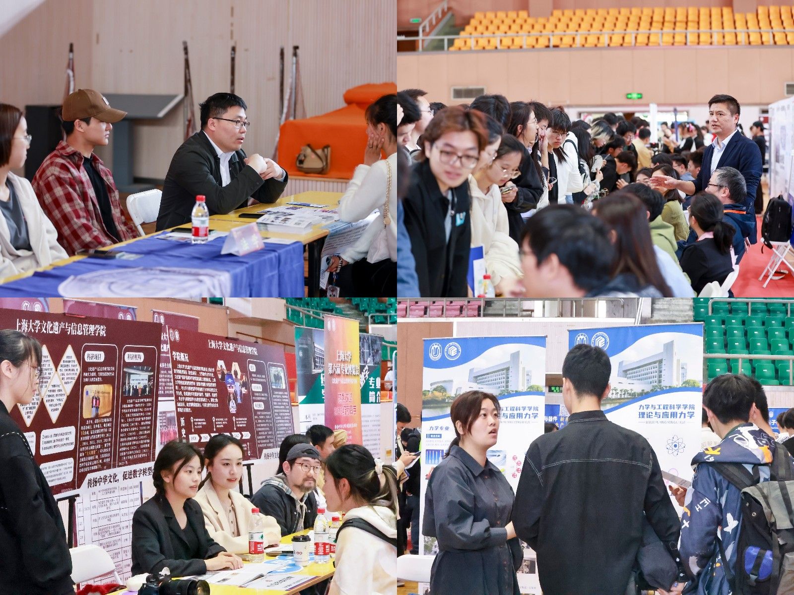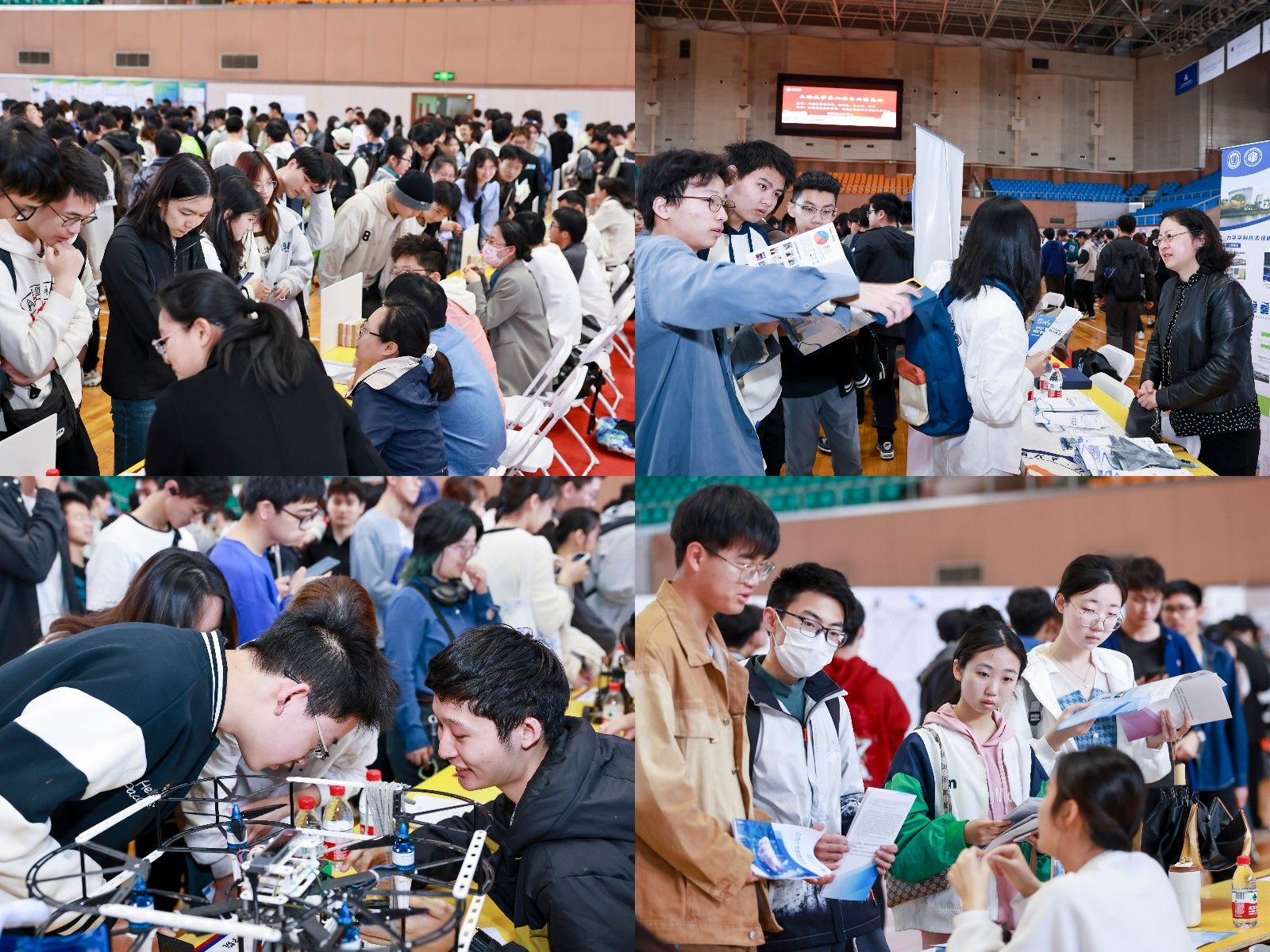 来自全校19个学院、60个专业的百余名师生,在体育馆为2000多名学生带来了一场专业介绍的饕餮盛宴,不仅耐心细致地解答着每一位前来咨询的学生,还精心准备了丰富多样的展示资料,包括院系介绍展板、宣传册、学生作品集和专业实验室所生产的小礼品等。