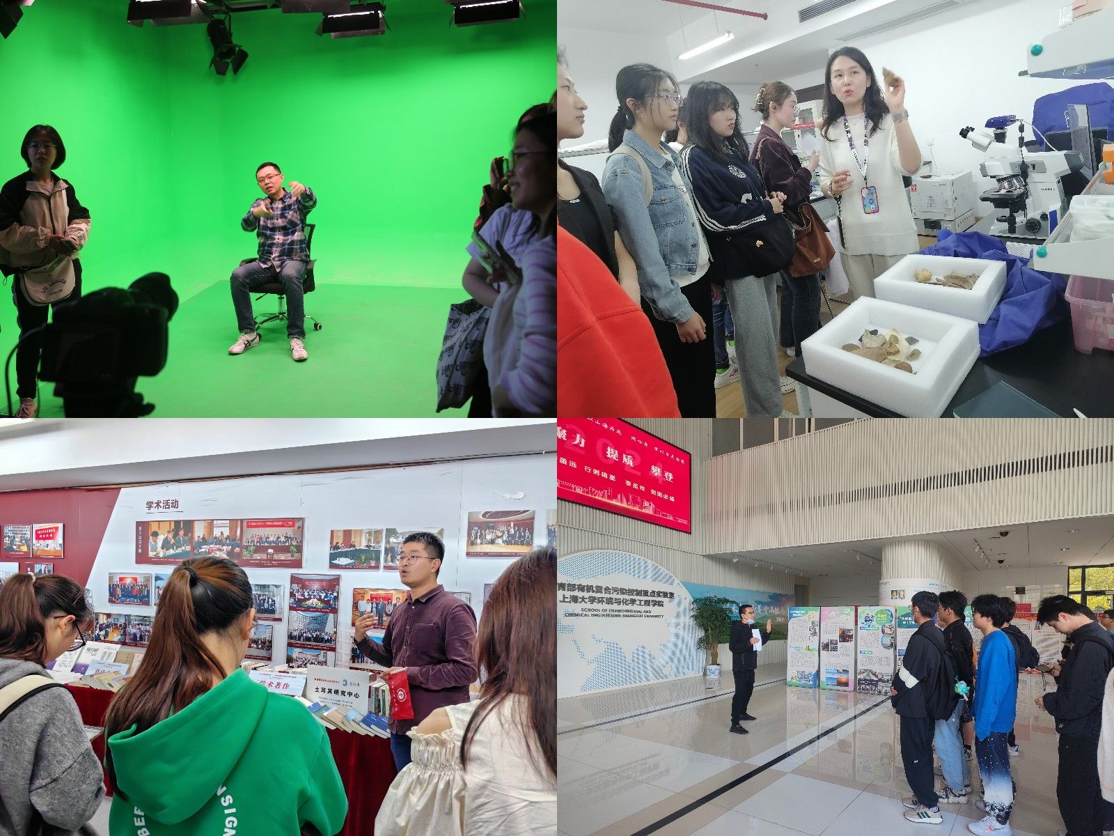 文学院带领同学们参观考古与文物保护实验室、院史馆、手语实验室和解忧小屋等,并为同学们展示汉古典文学吟诵、体会文学之美;文信学院带领同学们参观了“硅酸盐质文物保护教育部重点实验室”和考古教学实验室;新传学院在延长校区带领同学们走进上海智能媒体传播创新实验中心,感受智能媒体体验教学空间、智慧交互空间、智能媒体创意制作实验室、重大新闻现场虚拟仿真实训系统等;社会学院、法学院、马克思主义学院、管理学院、经济学院通过座谈交流的方式,介绍了专业特点、培养方式与就业情况等。