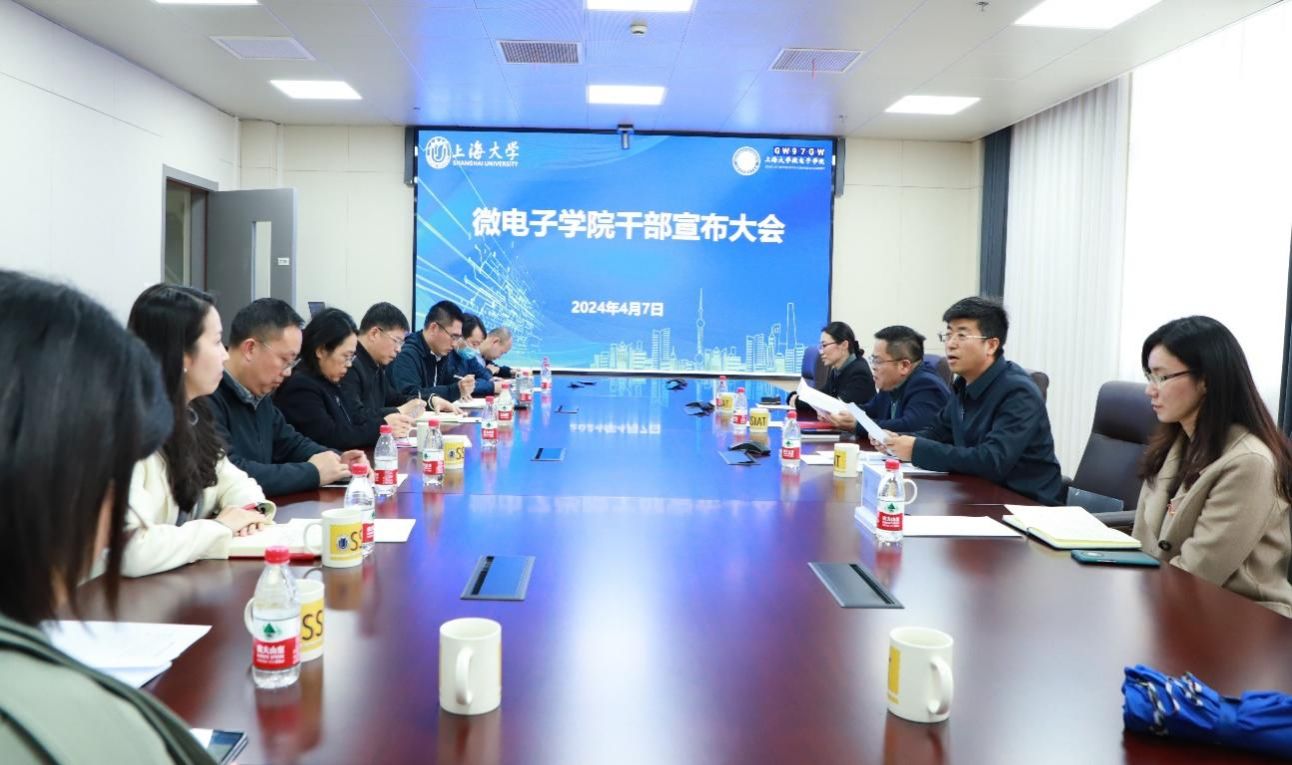 4月7日,微电子学院干部宣布会在微电子学院A楼313举行,sunbet申搏官方网站党委常委、副校长王从春,组织人事部组织处副处长、机构编制委员会办公室副主任张云中,学院党委书记郭纯生、院长赵建龙、执行院长张建华等领导班子成员,以及学科带头人、教工支部书记和教师代表参会。会议由张云中同志主持。