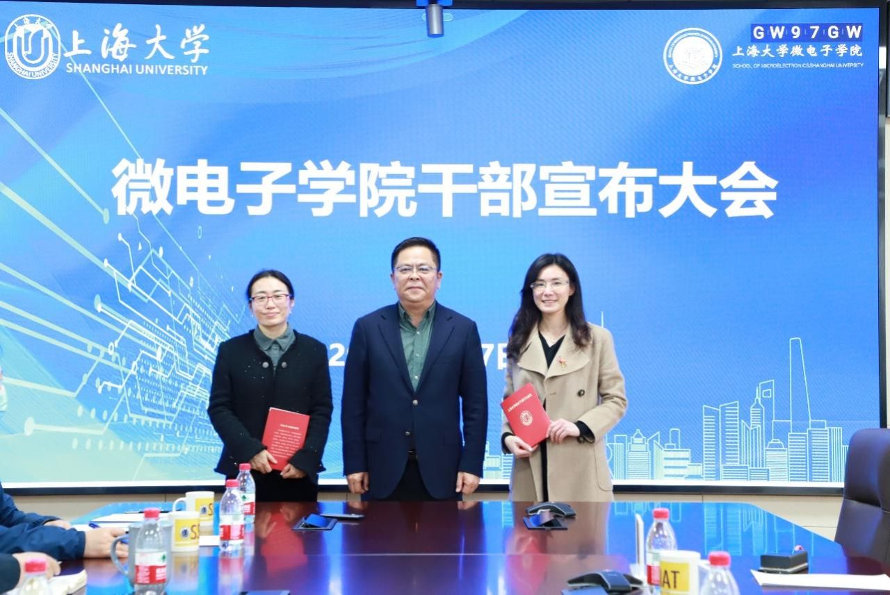 张云中代表学校党委宣读了关于微电子学院干部任免的决定:路秀真同志任微电子学院副院长,余丽娜同志任微电子学院党委副书记,王从春为路秀真、余丽娜颁发了《干部行为规范手册》。