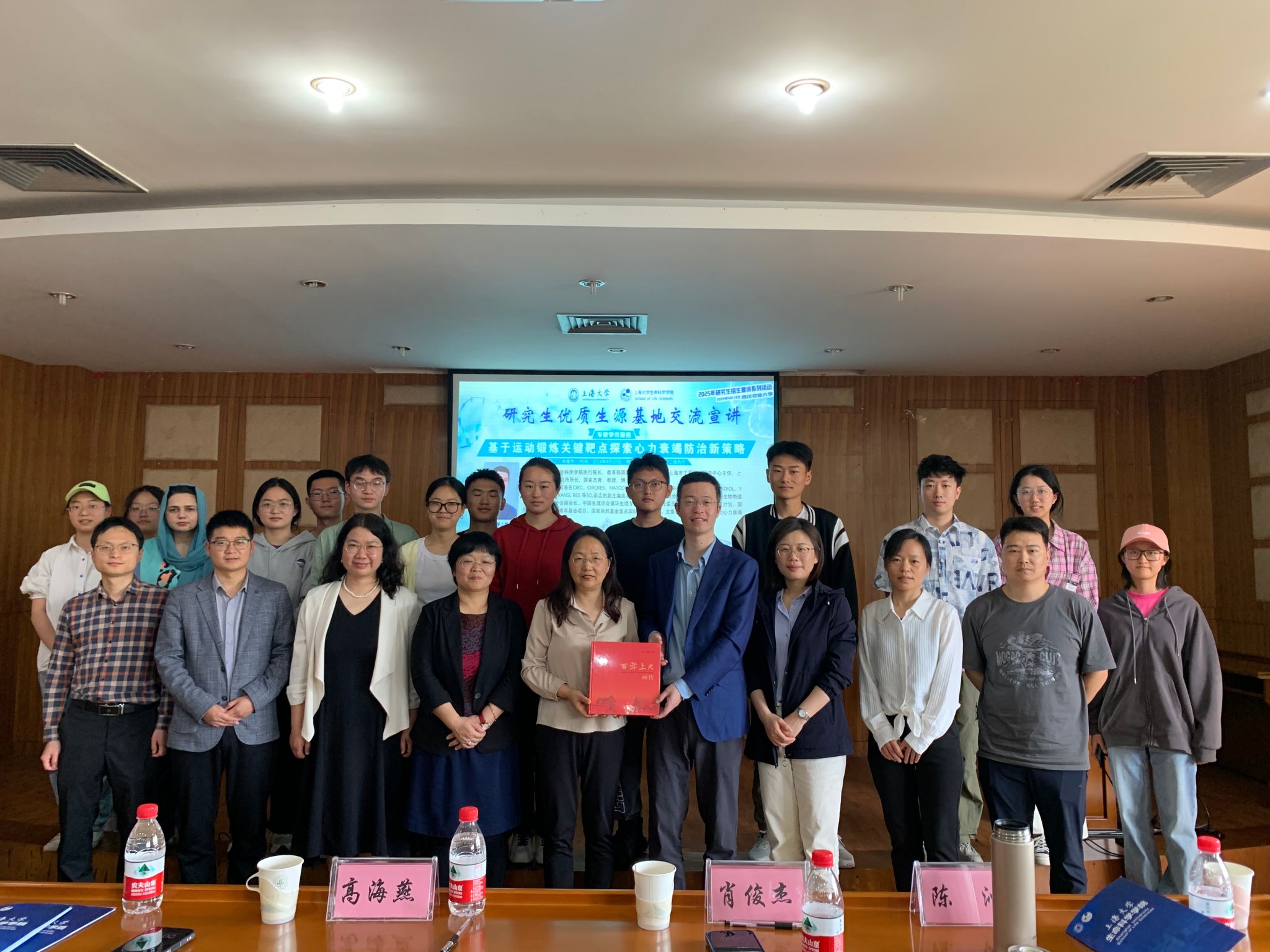 四川农业大学食品学院党委书记秦文首先对肖俊杰一行的来访表示了热烈的欢迎,希望以此活动为契机,两校相关学科之间能够围绕学术科研、人才培养等方面开展交流合作,尤其是加大优秀人才培养力度。接着,肖俊杰教授做了题为“基于运动锻炼关键靶点探索心力衰竭防止新策略”的学术报告,肖老师以深入浅出、风趣幽默的方式介绍了课题组的最新科研成果,给所有现场师生们在科研工作的研究思路与方法方面以启发,激发同学们对于深造的浓厚兴趣。