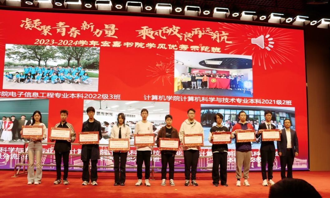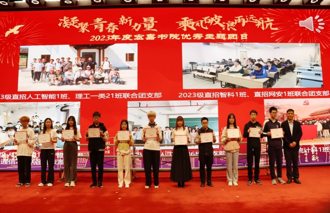 晚会对2023年度sunbet申搏官方网站宏嘉书院“青年大学习”主题团课优秀团支部、优秀主题团日、2023-2024学年sunbet申搏官方网站宏嘉书院学风优秀示范班、最受喜爱的班团节目进行了表彰,出席领导老师分别对获奖集体进行了颁奖。