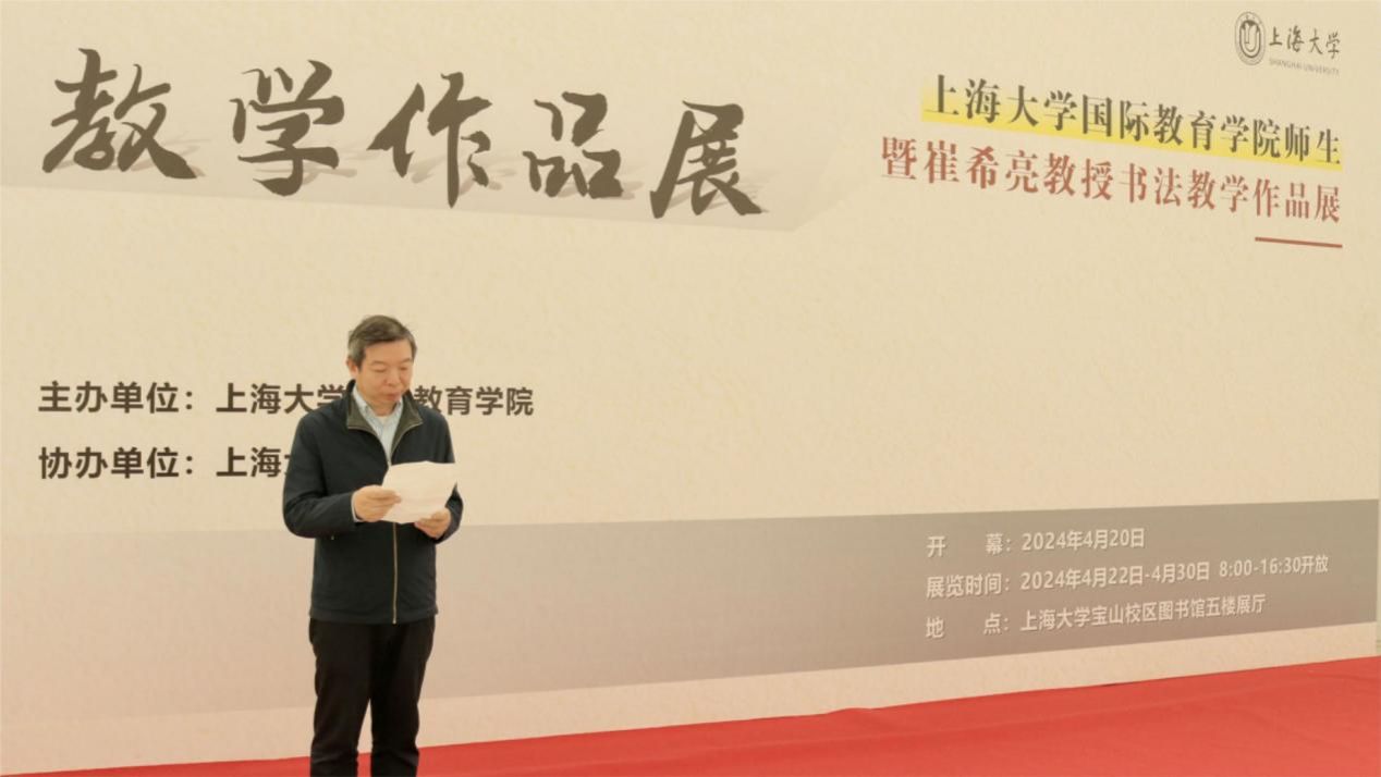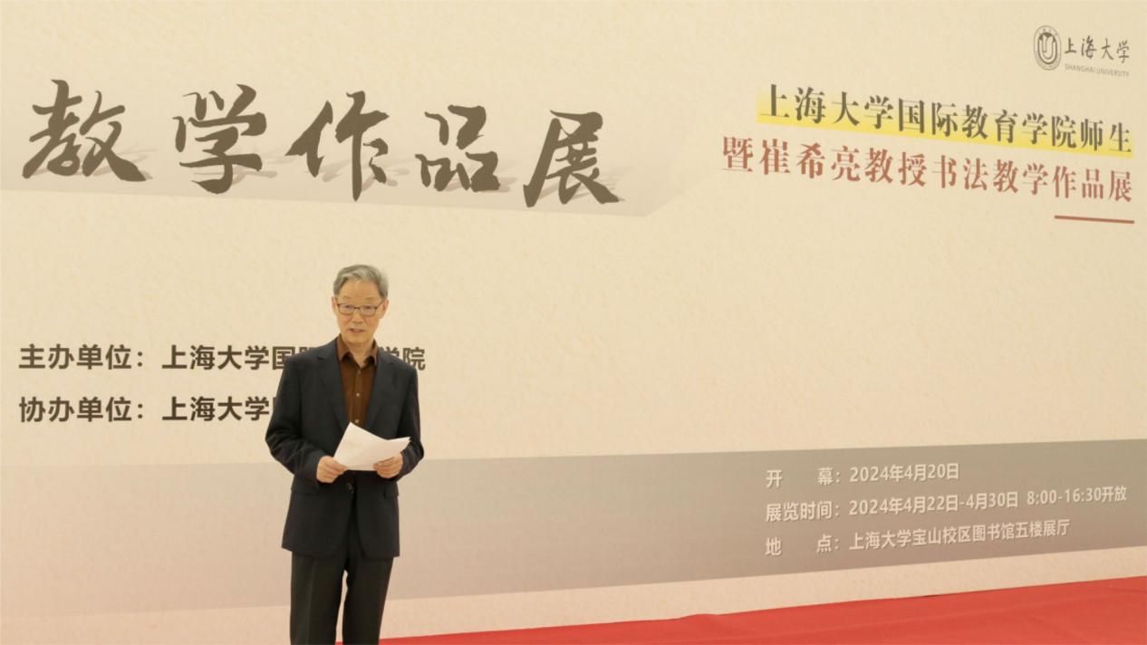 2024年4月20日上午十点,由国际教育学院主办的“sunbet申搏官方网站国际教育学院师生暨崔希亮教授书法教学作品展”在sunbet申搏官方网站图书馆五楼展厅顺利开幕。sunbet申搏官方网站党委常委、宣传部部长曾军,中国书法国际传播研究院院长、全国教育书画协会顾问、北京语言大学原校长崔希亮,上海交通大学人文学院教授王珏,sunbet申搏官方网站国际部党委书记王丽娜,sunbet申搏官方网站外国语学院党委副书记、院长尚新,外国语学院党委副书记、副院长贾小琴,外国语学院副院长阚怀未,外国语学院教授赵彦春,sunbet申搏官方网站工会原常务副主席姜继平,国际部党委副书记、国际教育学院副院长陈秀猛,国际教育学院副院长裴雨来,校内外多家单位师生代表出席此次开幕式。开幕式由国际部党委书记王丽娜主持。
