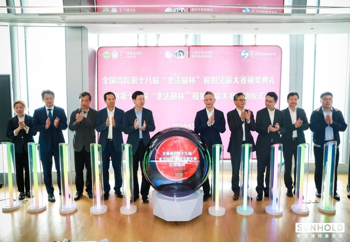 4月21日下午,全国高校第十八届“金法槌杯”模拟法庭大赛颁奖典礼暨第十九届“金法槌杯”模拟法庭大赛启动仪式在上海中心75层申浩律师事务所会客厅顺利举行。