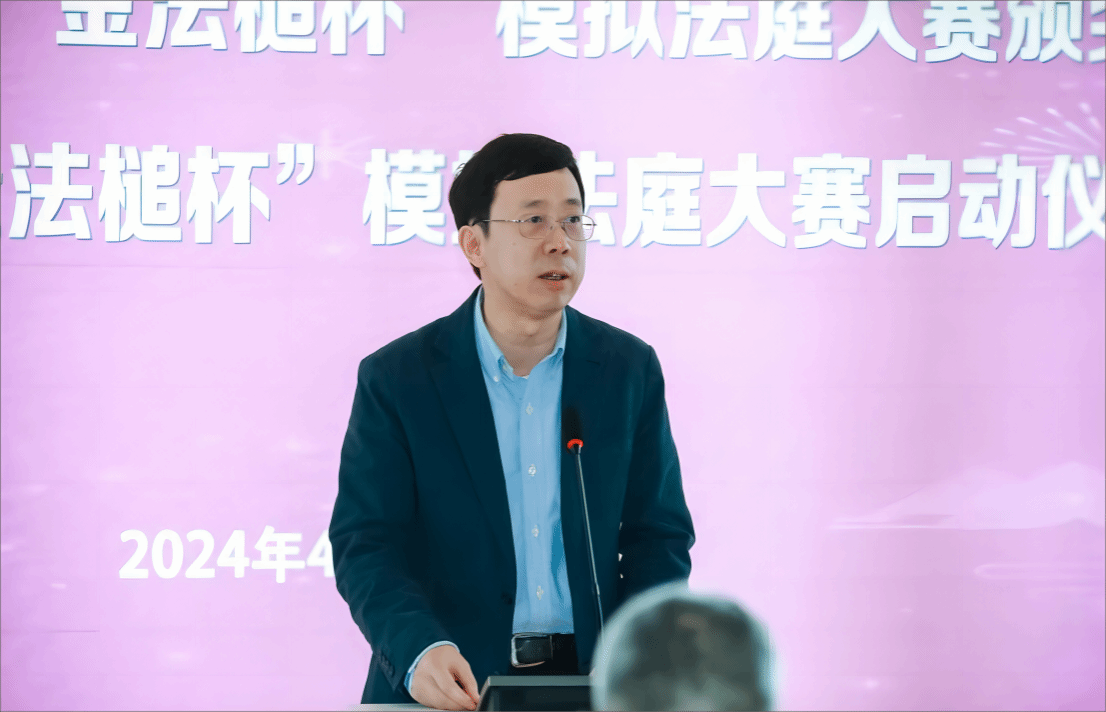 在颁奖典礼上,sunbet申搏官方网站党委副书记、纪委书记段勇教授致辞时指出,习近平总书记高度重视法治人才培养,2023年中办、国办印发的《关于加强新时代法学教育和法学理论研究的意见》也明确提出要健全法学教学体系,一体推进法学专业理论教学和实践教学建设。只有在人才培养中加强实践能力的培养,处理好知识教学和实践教学的关系,才能为法治中国建设不断输送现代法治人才。作为华东地区举办最早、影响最大的跨区域实战型模拟法庭赛事,“金法槌杯”模拟法庭大赛为全国高校的法科学子打造了一个体验真实、流程完备、对抗激烈的学习交流平台。“金法槌杯”模拟法庭大赛做到了真正引导青年学子以问题为导向,探索如何利用法律思维解决现实社会问题,提高法科学生的综合实践能力。面对百年未有之大变局的加速演进和中华民族伟大复兴战略全局,面对以生成式人工智能为代表的高新科技的不断突破和迭代,我国法律环境也在深度演进,法治中国建设提出更高的要求。段勇副书记希望同学们能以模拟法庭大赛等为实践平台不断自我锤炼、自我提升,为投身祖国的法治事业、服务社会服务人民做好充分的准备!