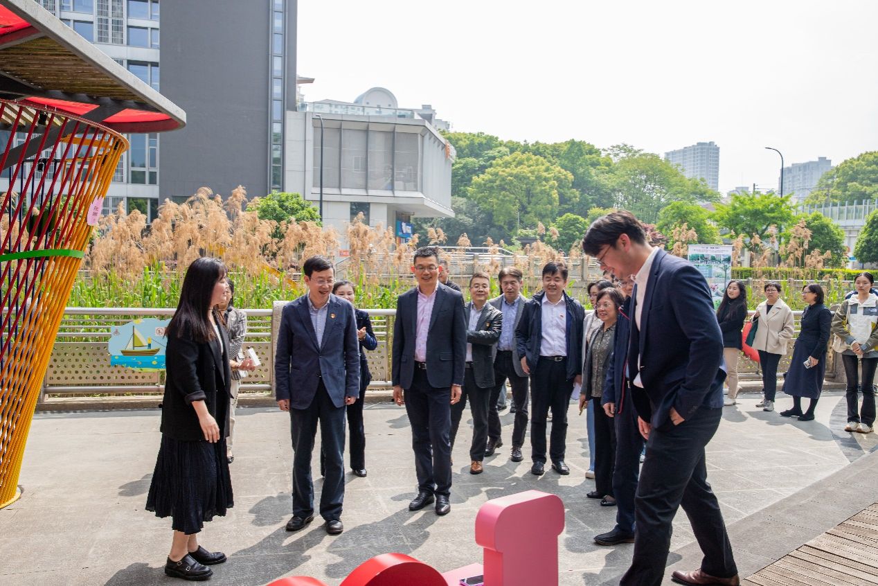 与会人员还共同参观了校地合作落地项目爱思儿童公园,了解了这一集休闲、娱乐与廉洁文化教育于一体的主题公园的改造情况。该主题公园的更新改造由上海美术学院刘勇教授团队打造,联合了多个专业协同参与,于今年4月初验收。公园的设计巧妙融合了自然景观与廉洁文化元素,通过各种雕塑和景点传递廉洁理念。例如“廉洁蒲公英”雕塑象征着廉洁文化理念的传播,“红色清廉之门”在原有儿童公园的基础上增添了廉洁和红色文化元素,“修身”步道让游客在漫步中品读历代先哲的廉洁语录。这里不仅是儿童的游乐场,也是成人廉洁教育的重要场所,弘扬了社会主义核心价值观,成为推广廉洁文化的重要窗口。