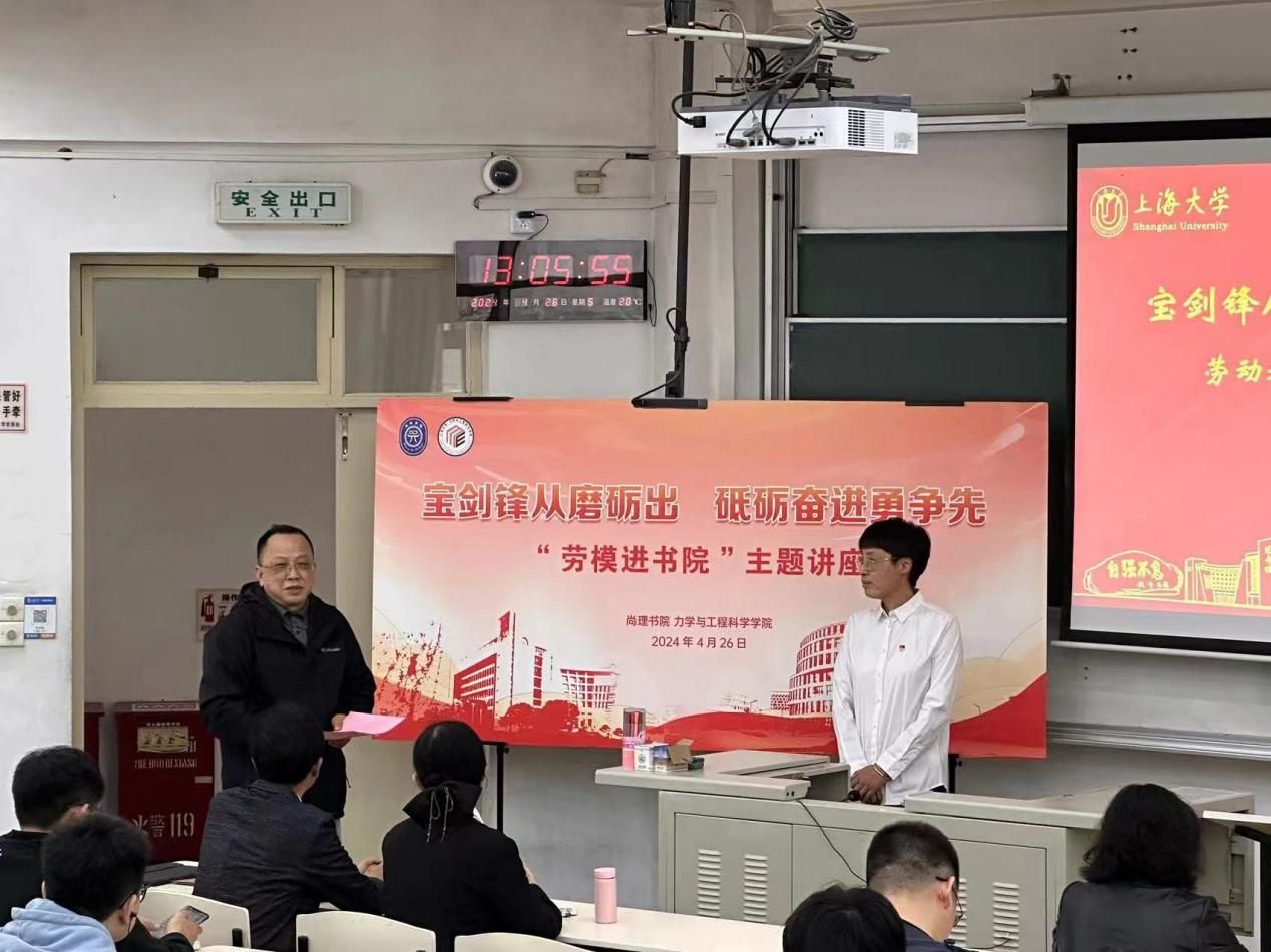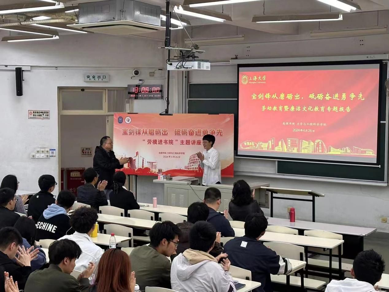 征途漫漫,劳不可缺。五一国际劳动节前夕,为全面学习贯彻党的二十大精神,将习近平总书记关于劳动精神的重要思想内化于心、外化于行,牢固树立劳动最光荣、劳动最崇高、劳动最伟大、劳动最美丽的观念,培养勤俭、奋斗、创新、奉献的劳动精神,4月26日下午尚理书院、力学与工程科学学院举办的“宝剑锋从磨砺出,砥砺奋进勇争先”劳模进书院暨廉洁文化教育专题报告于sunbet申搏官方网站宝山校区CJ207室举行。