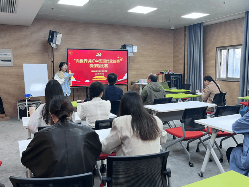 为庆祝中华人民共和国成立75周年,深入学习宣传贯彻习近平新时代中国特色社会主义思想,全面贯彻落实党的二十大精神,鼓励研究生通过微课的方式生动呈现中国式现代化故事,国际教育学院汉语国际教育学生党支部于近日面向学院研究生开展了“向世界讲好中国式现代化故事”微课程比赛。党委研工部副部长周轶,国际部党委副书记、国际教育学院副院长陈秀猛,国际教育学院副院长张新玲担任比赛评委,辅导员孙先君主持。