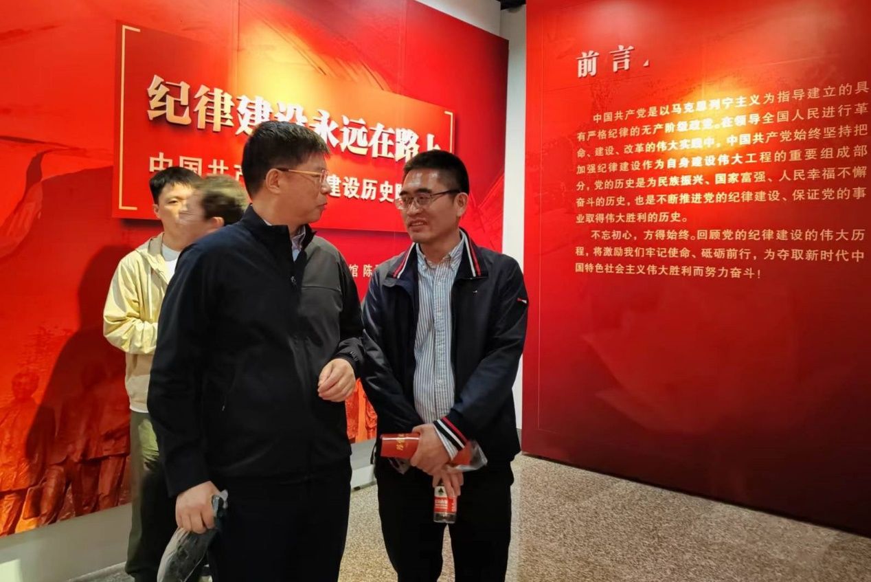 其次,师生参观了“纪律建设永远在路上——中国共产党纪律建设历史陈列展”。展览分为“创立与探索”“推进与曲折”“恢复与发展”“新时代 新征程”四部分。整个展览梳理了中国共产党成立至今在纪律建设史上的50余个“第一次”。师生们在大量的历史照片、文献资料中感受到了我们党始终以严明的纪律管党治党,永远保持队伍纯洁性,在纪律建设方面做出的生动实践。