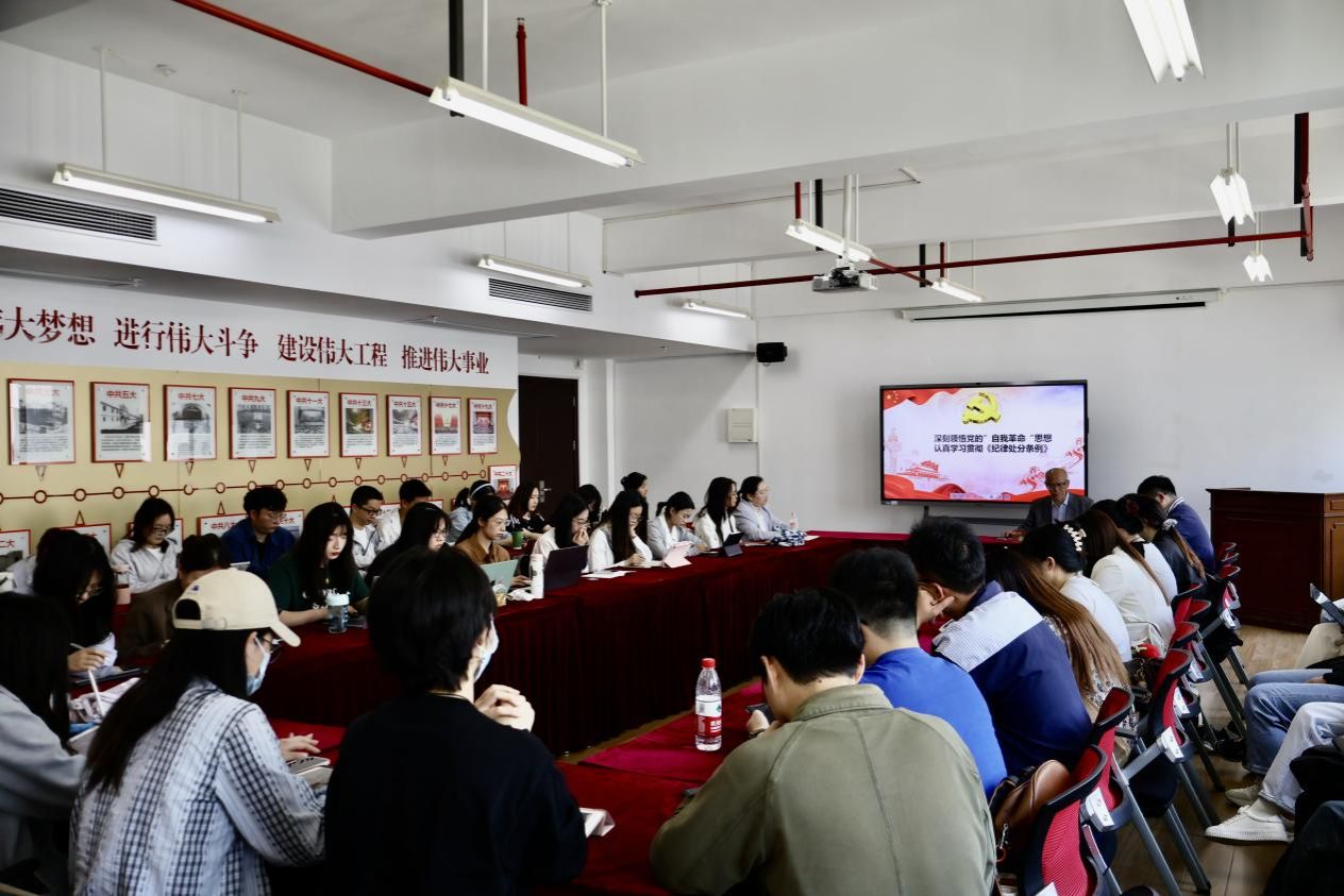 5月10日下午,sunbet申搏官方网站法学院学生党员和积极分子党纪学习教育主题报告会在宝山校区法学院504会议室顺利举行。sunbet申搏官方网站特邀党建组织员、sunbet申搏官方网站信访办原主任安山老师应邀作题为《深刻领会党的“自我革命”思想,认真学习贯彻中国共产党纪律处分条例》的主题报告,sunbet申搏官方网站法学院党委副书记、副院长于伟,研究生辅导员朱佳以及中夏党支部、法正党支部等学生党员、学生党支部书记以及新一批入党积极分子等共同参加学习。