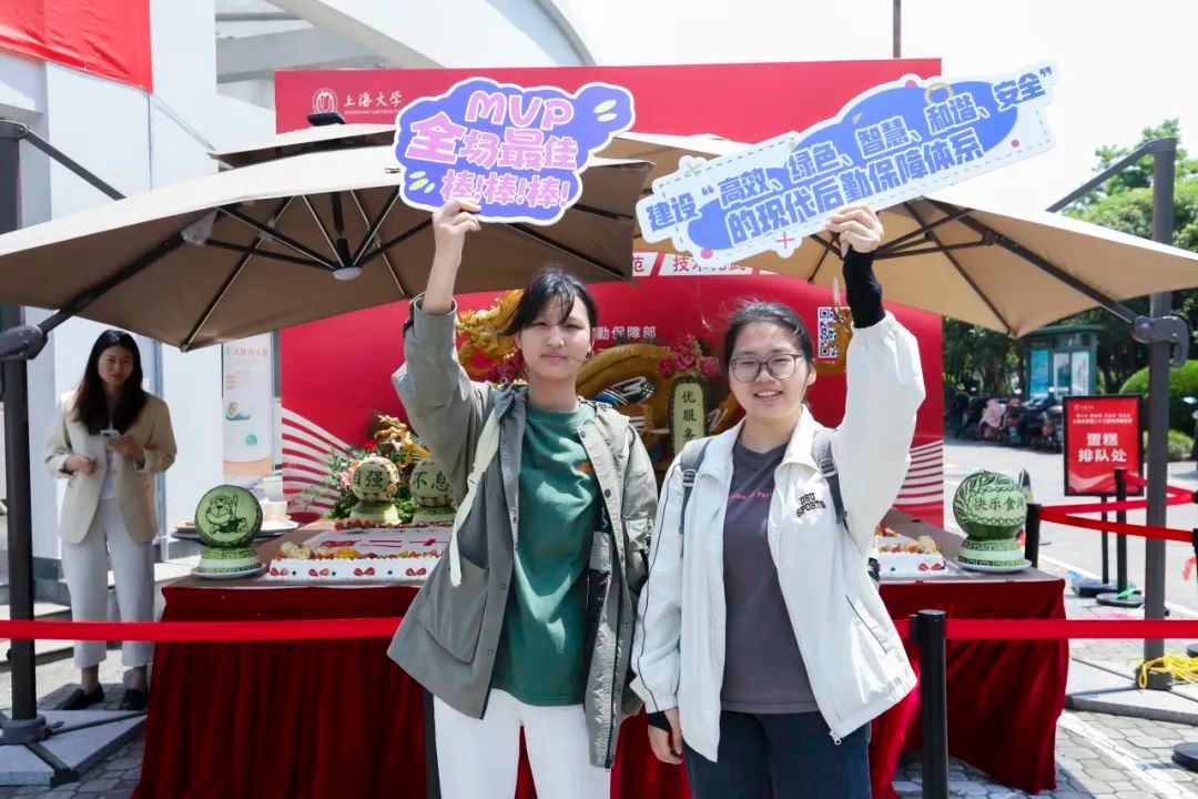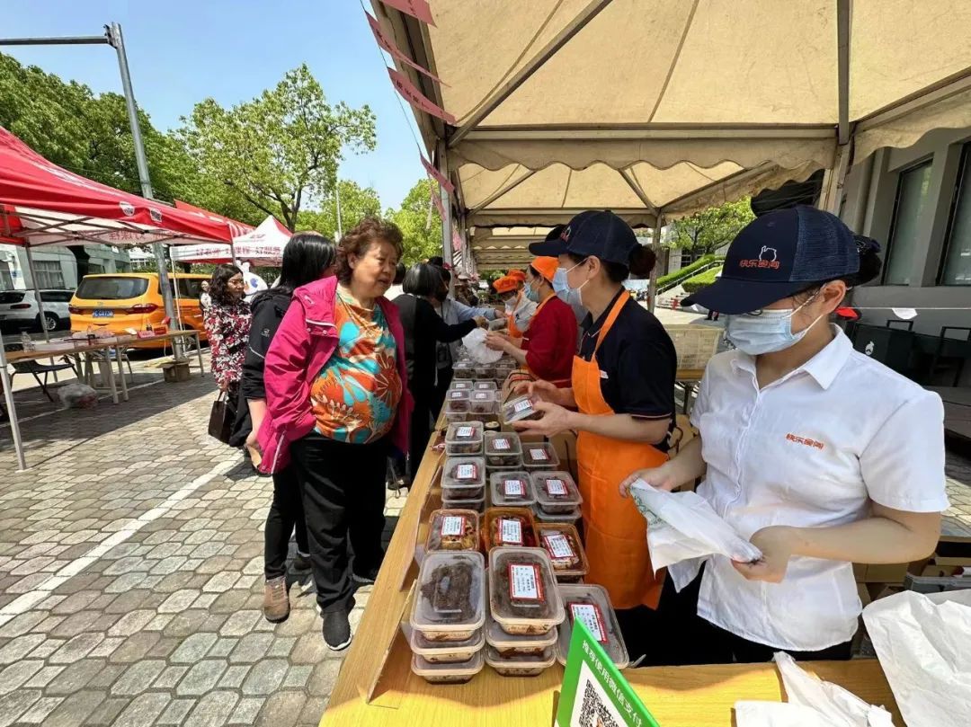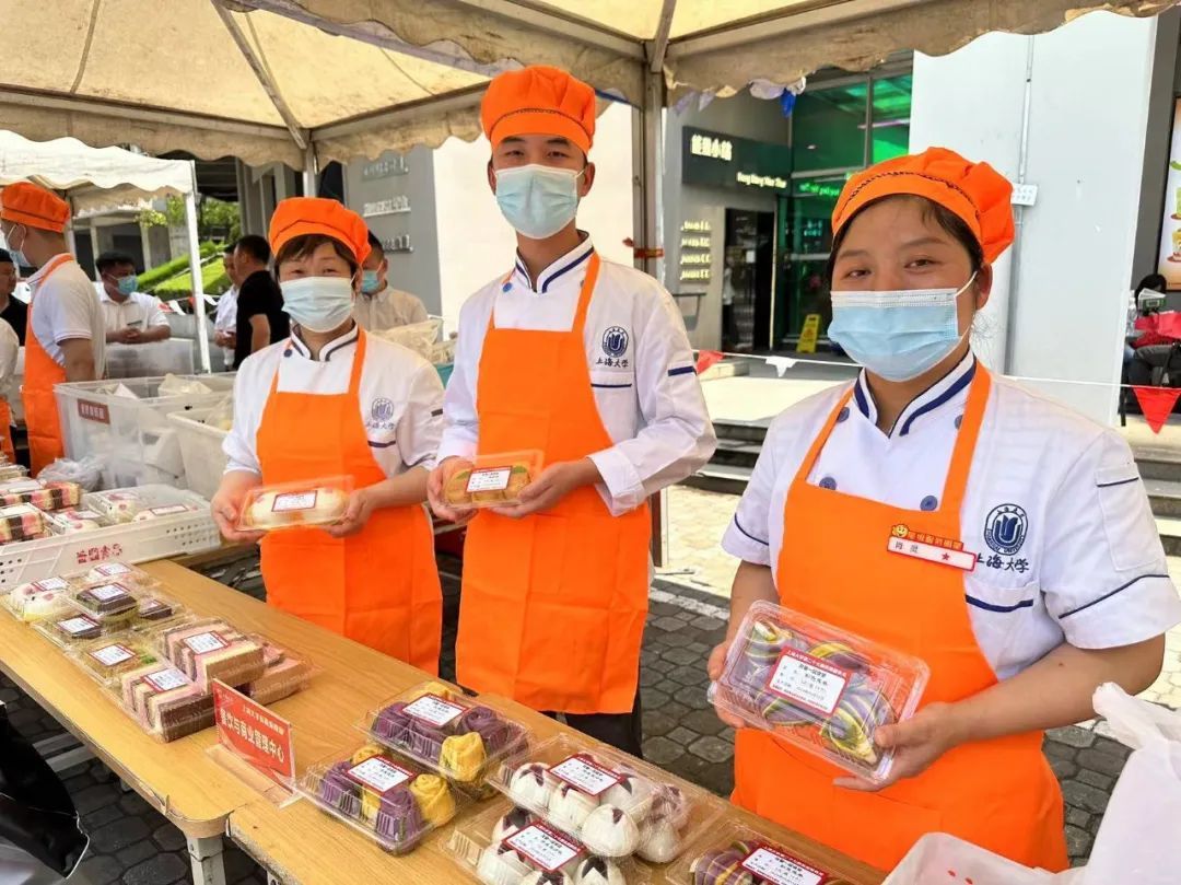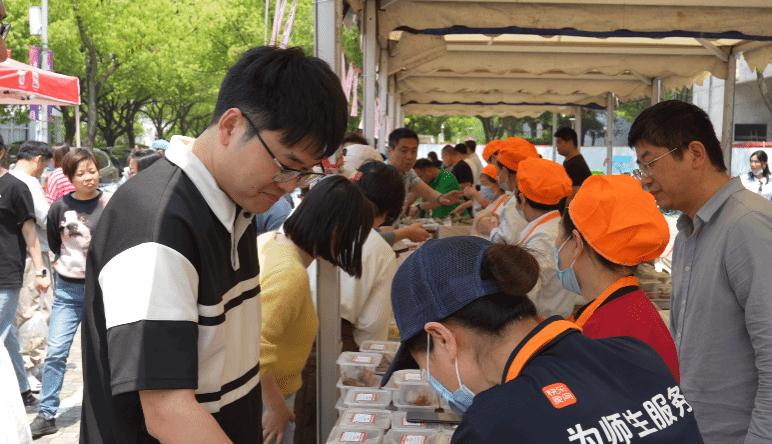 开幕式结束后,优质服务月的大型展示展销活动在水秀楼前火热开启。色香味俱佳的菜肴、品种繁多的商品,以及绿色植物的展示与销售,成功吸引了众多师生的积极参与。