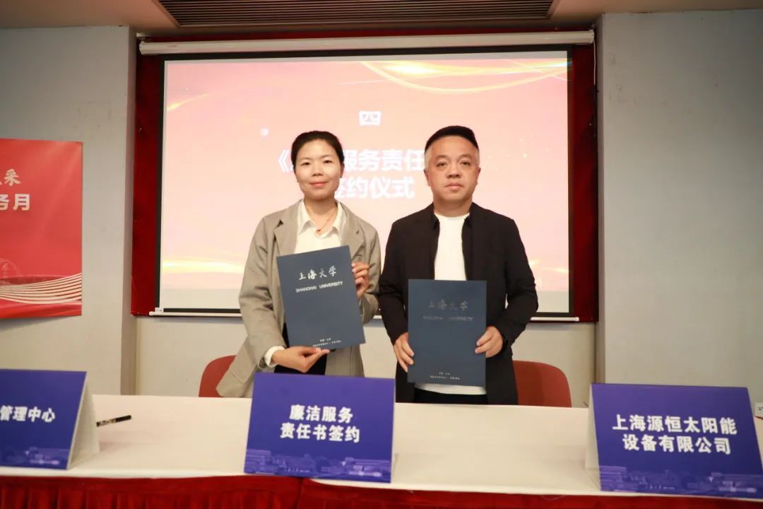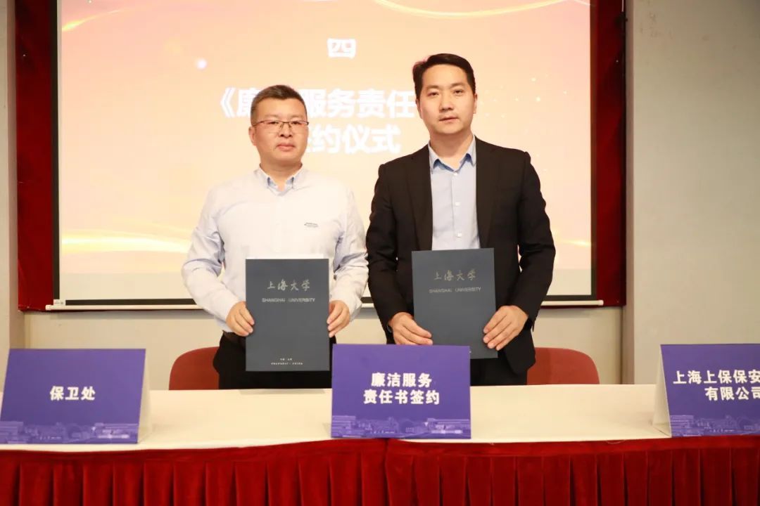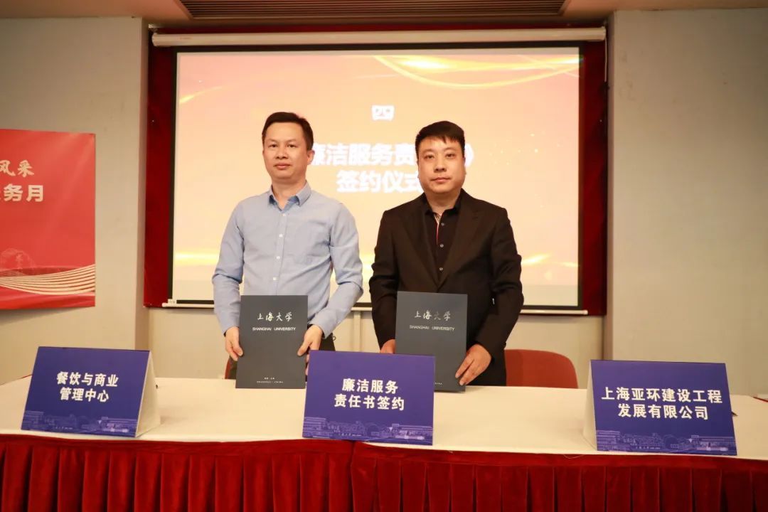 为进一步规范后勤保障部各业务部门与社会服务企业的行为,加快形成既亲又清、良性互动的氛围,后勤保障部副部长、保卫处处长徐义圣,餐饮与商业管理中心主任刘伟纲,物业管理中心主任褚凤灵分别与校内社会服务公司签订《廉洁服务责任书》。