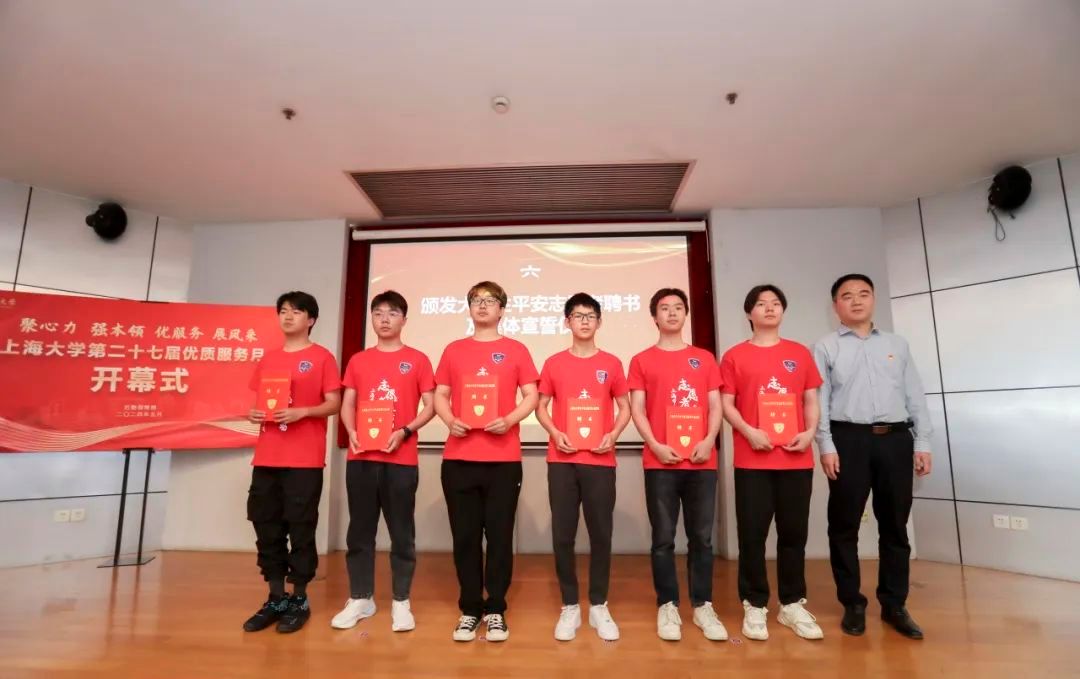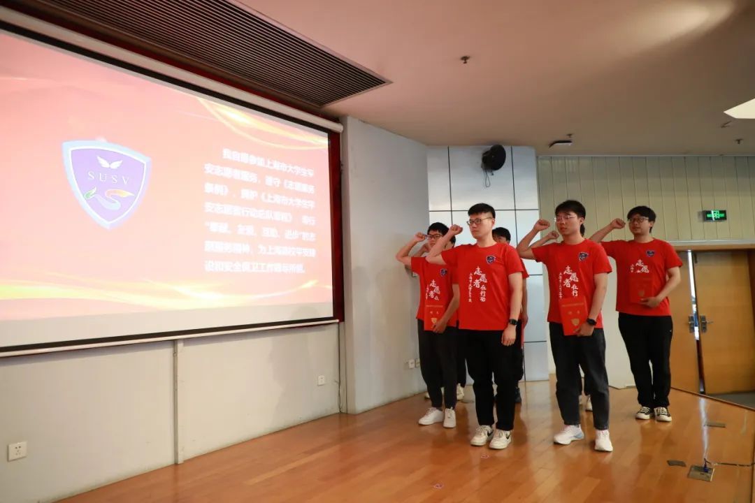 2018年,sunbet申搏官方网站大学生平安志愿者行动支队成立,开展平安校园志愿服务工作,充分发挥大学生在平安校园建设中自我管理力量。保卫处副处长王国正为大学生平安志愿者代表颁发聘书,并进行集体宣誓。