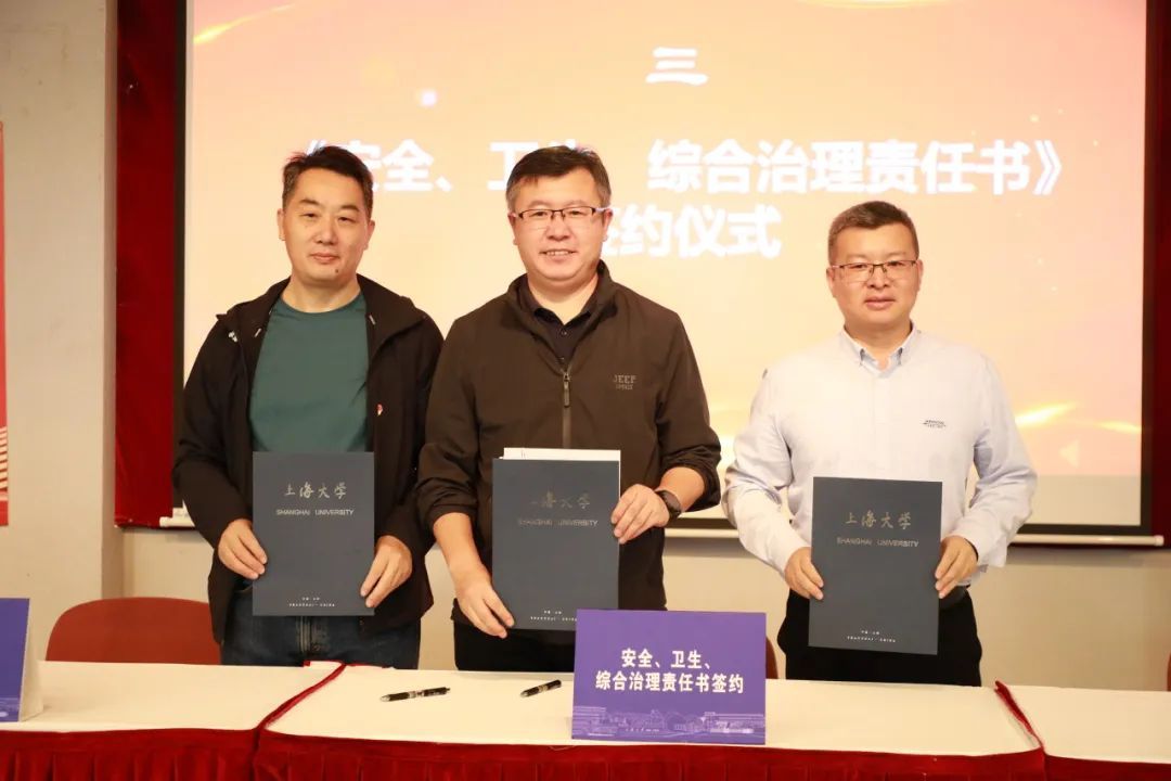 后勤保障部部长张基涛与保卫处、基建处,后勤保障部副部长、风险控制办公室主任胡乾源与公寓管理中心、乐乎学术服务中心分别签订《安全、卫生、综合治理责任书》,明确生产主体责任,形成一级抓一级、层层抓落实的安全、卫生、综合治理防范体系。
