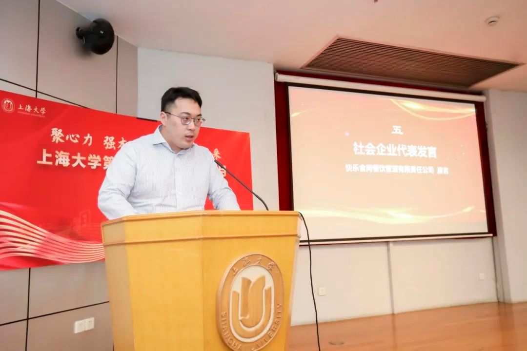 快乐食间餐饮管理有限责任公司上海区域总经理唐吉作为社会企业代表发言,并承诺始终以师生为本,竭诚提供优质服务。