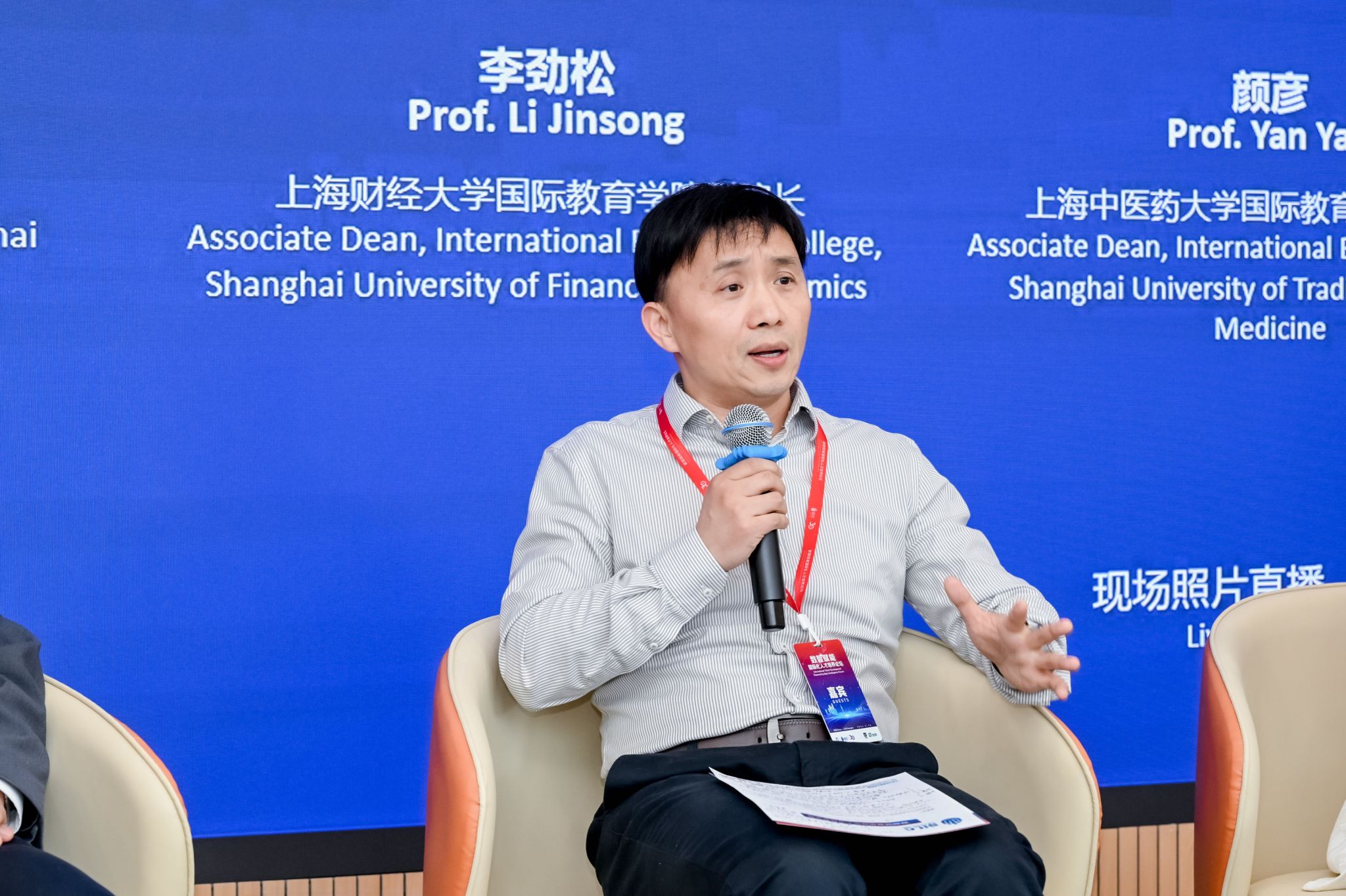 在随后进行的第一个圆桌论坛上,教育部在线教育研究中心秘书长汪潇潇,sunbet申搏官方网站教务部常务副部长彭章友,上海商学院洛桑酒店管理学院执行院长胡笑寒,浙江大学国际教育学院前任院长沈杰围绕慕课出海的机遇和挑战进行了积极讨论。在第二个圆桌论坛上,sunbet申搏官方网站国际部副部长崔巍,sunbet申搏官方网站学生工作办公室主任孟祥栋,上海财经大学国际教育学院副院长李劲松,上海中医药大学国际教育学院副院长颜彦围绕数智赋能的国际化人才培养进行了深入探讨。