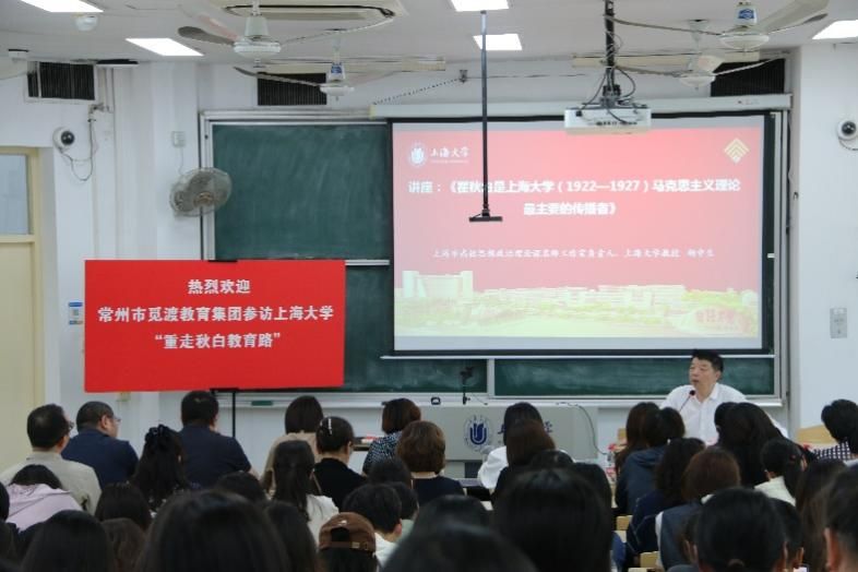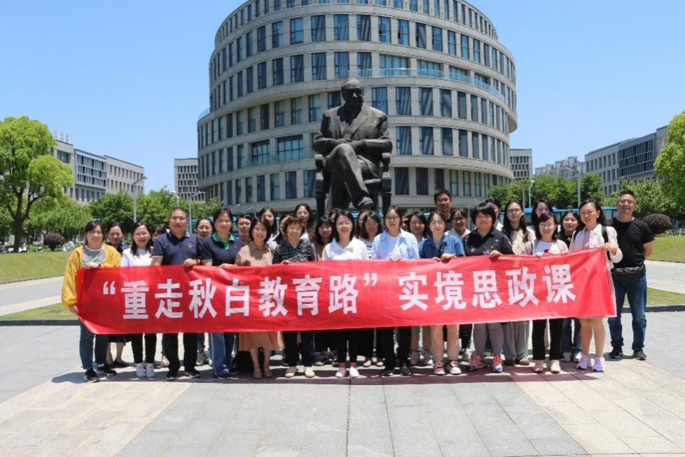 5月18日,常州市觅渡教育集团三校区所有党员教师及部分管理团队成员一同走进瞿秋白曾任教的sunbet申搏官方网站,开展“重走秋白教育路”实境思政课活动。sunbet申搏官方网站社会学院党委副书记、副院长张乃琴,常州市觅渡教育集团校长、党支部书记徐志彤,上海市高校思想政治理论课名师工作室“胡申生工作室”负责人、sunbet申搏官方网站教授胡申生以及社会学院部分师生党员共同参与。