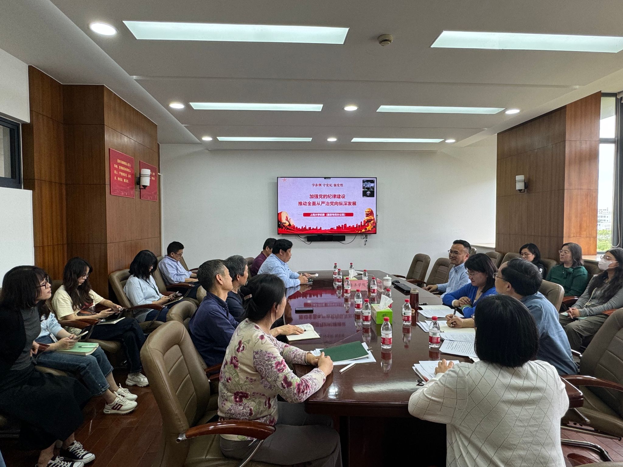 会议伊始,侯学标传达了2024年上海市全面从严治党警示教育大会精神,并做主题为“加强党的纪律建设,推动全面从严治党向纵深发展”的专题讲座。从开展党纪学习教育的党纪学习背景、必要性、学习目标和学习要求等方面进行详细介绍,让参会教职工深刻认识到廉洁自律的重要性。讲解中,侯学标通过以案说德、以案说纪、以案说法、以案说责,对《条例》新增内容以及党的“六大纪律”主要内容进行深刻解读,揭示了腐败行为的危害性和严重后果。