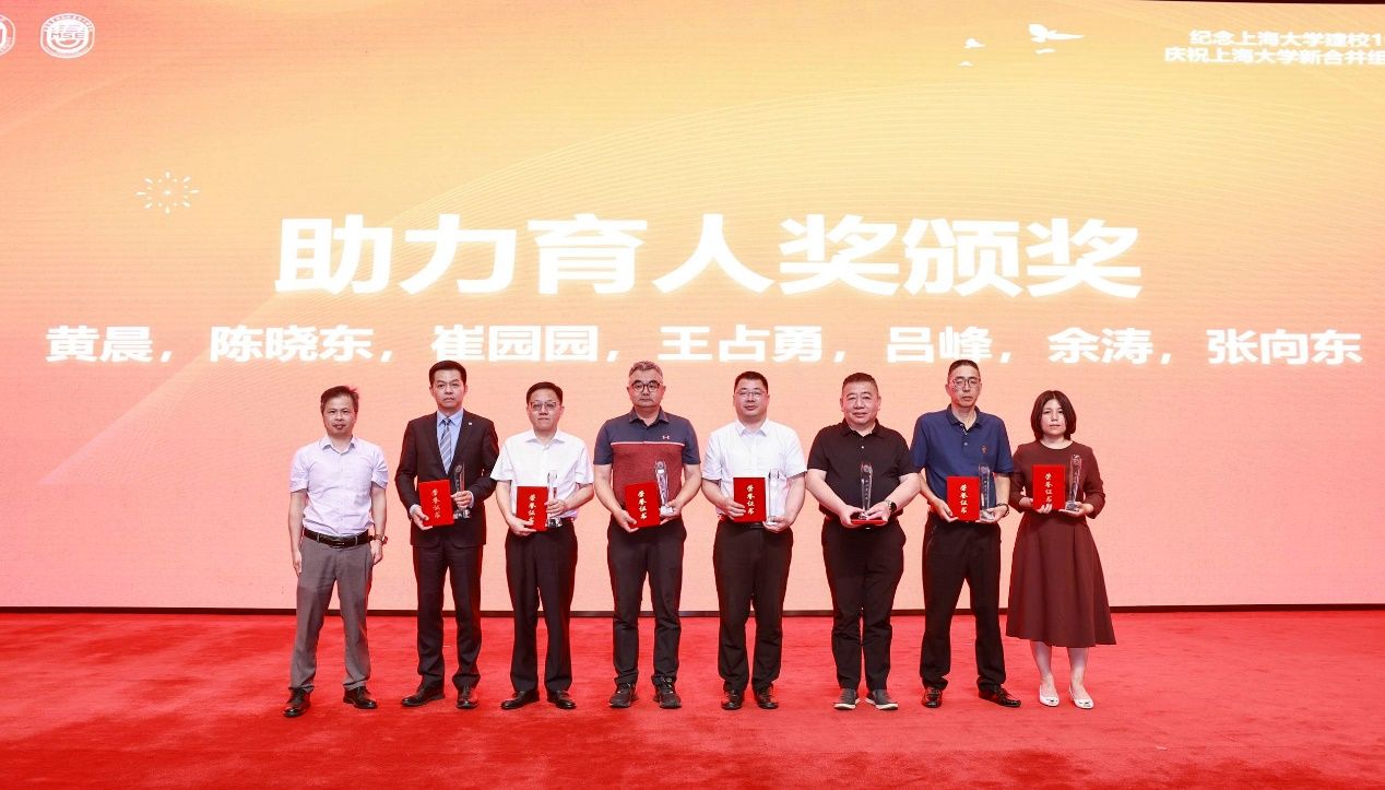 为表彰在学生培养、教育创新等方面做出杰出贡献的校友,同时激励更多的校友积极投入到学校的育人工作中,为sunbet申搏官方网站培养更多的优秀人才,学院还特设“助力育人奖”。黄晨、陈晓东、崔园园、王占勇、梁小伟、余涛、张向东等七位校友获“助力育人奖”。材料学院副院长王武荣老师为获奖校友颁奖并合影留念。
