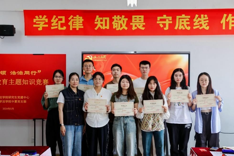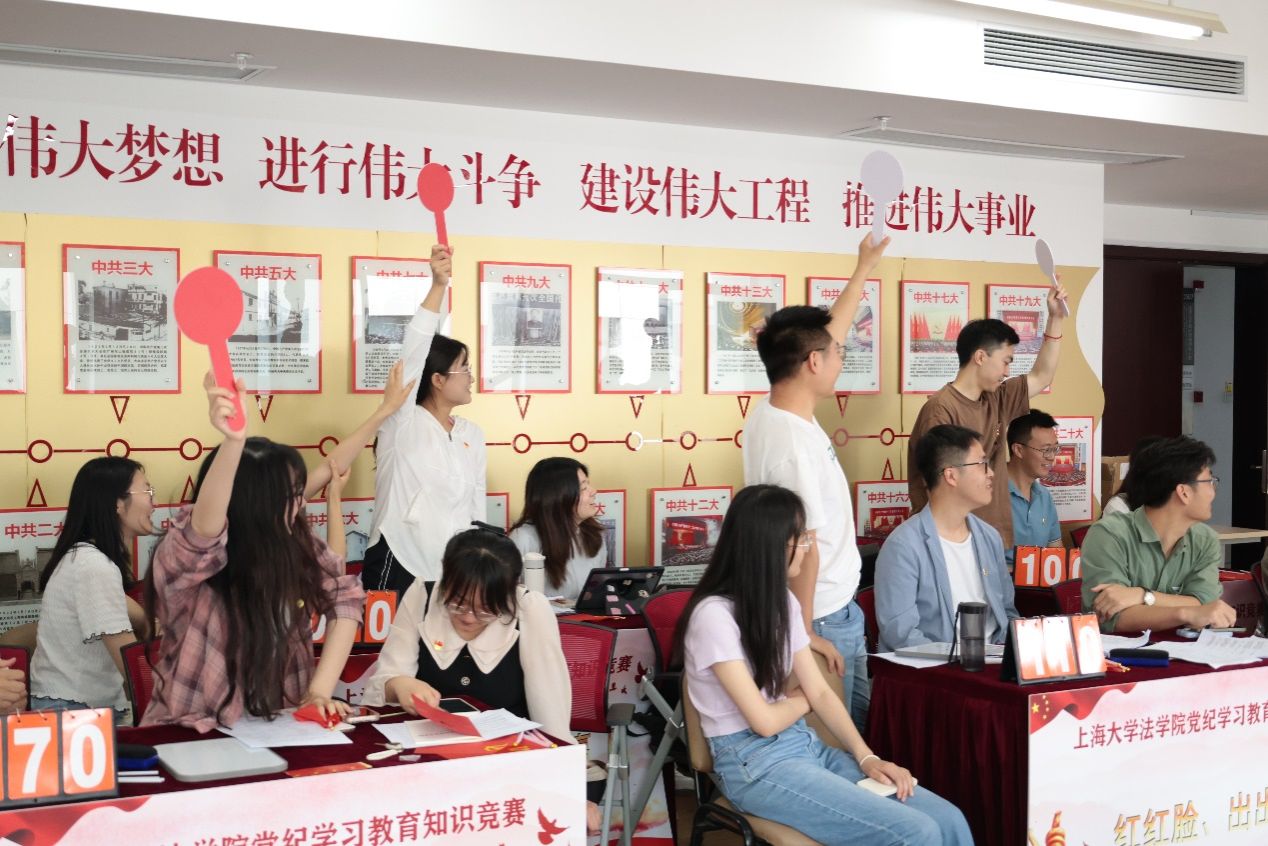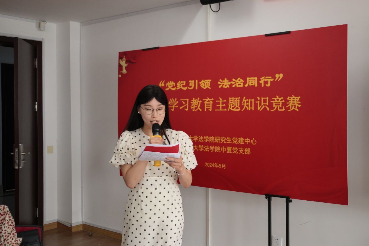 为了认真推进党纪学习教育的开展,加强法学院全体学生党员对《中国共产党纪律处分条例》的学习领会,强化党支部的纪律建设,5月30日下午,sunbet申搏官方网站法学院研究生党建中心联合本科中夏党支部开展“党纪引领﹒法治同行”党纪学习教育主题知识竞赛。来自法学院各本研党支部的10支队伍参加竞赛。sunbet申搏官方网站组织人事部组织处副处长、党校副校长卢吉超,党委研究生工作部副部长周轶,学工办思政科副科长孙钟玲,法学院党委副书记、副院长于伟及全体本研思政辅导员观摩了竞赛。