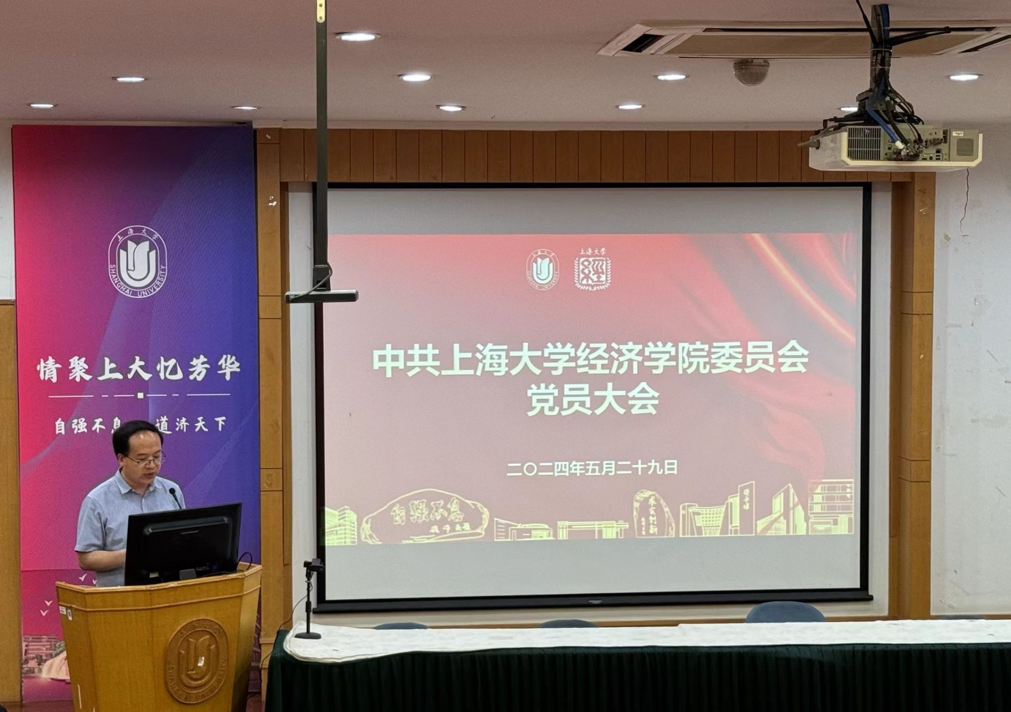 5月29日下午,经济学院在J103教室召开学院党员大会选举出席sunbet申搏官方网站第四次党代会代表。校党委组织员黄谷列席会议,党委副书记、常务副院长殷凤,党委委员、副院长刘康兵,党委委员、挂职副院长周思,党委委员、产经中心副主任谭静等全体师生党员参加此次会议。本次会议由经济学院党委副书记、副院长冯玉鑫主持。