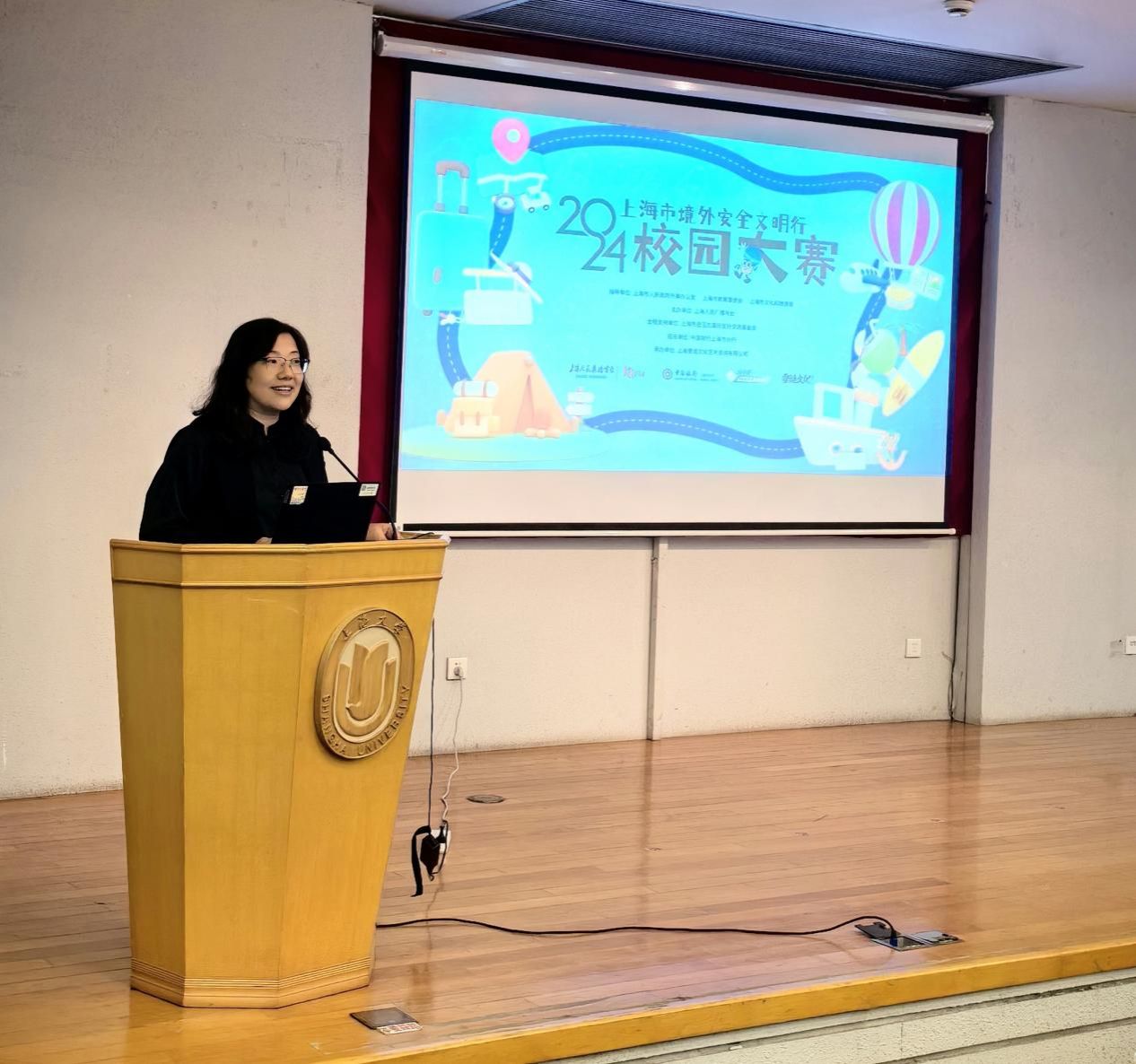 6月6日下午,2024上海市境外安全文明行校园宣讲活动暨sunbet申搏官方网站第一次师生出国(境)行前教育在sunbet申搏官方网站宝山校区成功举办。国际部党委书记王丽娜、保密办公室主任韦蒨、中国银行的嘉宾代表、教务部、研究生院、国际部相关老师以及近300名参加各类海外学习交流项目的学生和因公出国(境)教师参加了此次活动。活动由国际部国际合作处副处长来慧洁主持。