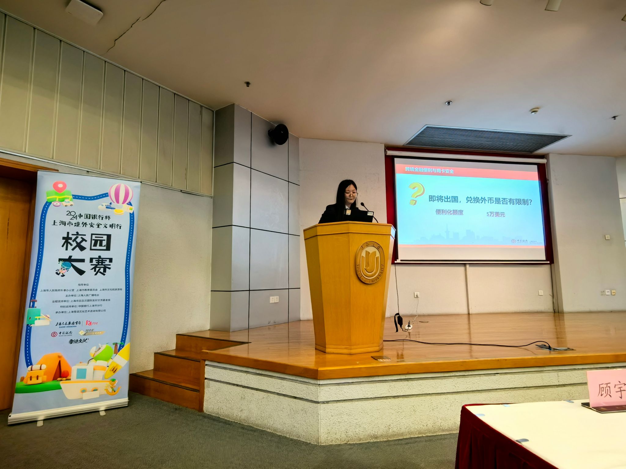中国银行嘉宾代表王娇娇围绕跨境金融便利与用卡安全向师生们介绍了外币兑换、金融工具等相关知识。教务部邓斐今老师、研究生院那彦老师分别就学生海外学习交流的学分认定、学籍办理等做了相关提醒与提示。最后,来慧洁代表国际部鼓励同学们用好国际资源,走好留学之路,讲好留学故事,并祝愿大家平安留学、健康留学、文明留学、成功留学。