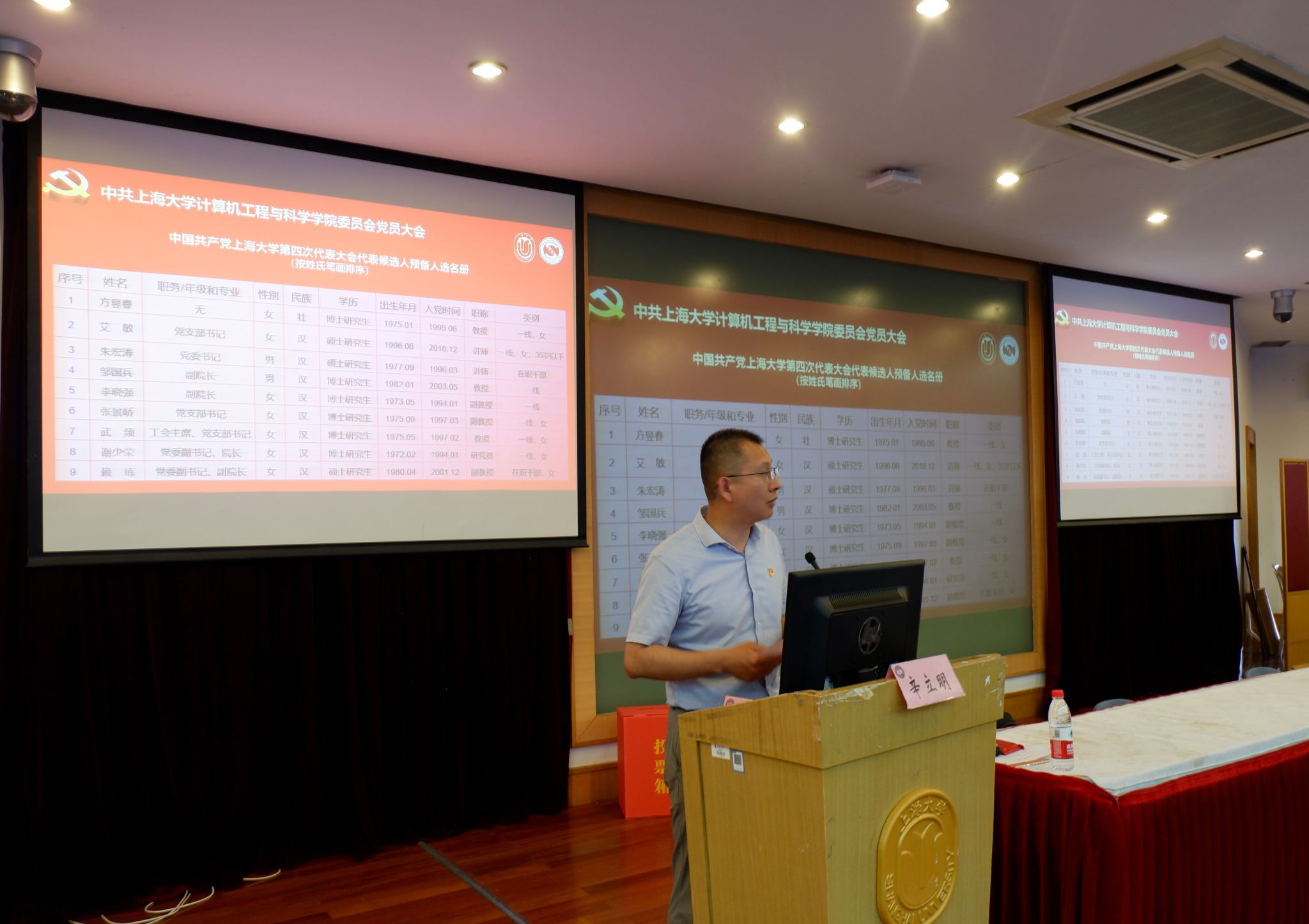 近日,中共sunbet申搏官方网站计算机工程与科学学院委员会党员大会在宝山校区J202方润华讲堂顺利开。学院全体师生党员出席本次大会,校纪委(监察专员办公室)李岩同志列席会议。大会由学院党委书记朱宏涛同志主持。大会选举产生了计算机工程与科学学院党委出席中共sunbet申搏官方网站第四次代表大会代表。