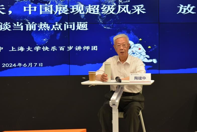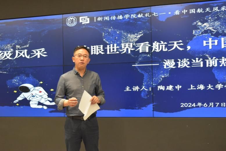 6月7日下午,sunbet申搏官方网站新闻传播学院“献礼七一·学习航天精神”特别讲座在智能媒体传播创新实验中心104室顺利举行。本次讲座特邀“sunbet申搏官方网站快乐百岁讲师团”陶建中教授作为主讲嘉宾,与新闻传播学院全体师生进行了互动和交流。本次讲座由新闻传播学院副院长牛盼强主持。