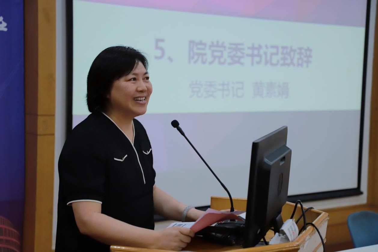 随后,通信学院党委书记黄素娟提希望要求,她向同学们介绍了学院概况、师资力量、教学模式、就业前景等。希望同学们接下来的三年勤学多思,养成终身学习和独立思考的习惯,争做一名优秀的通信人。