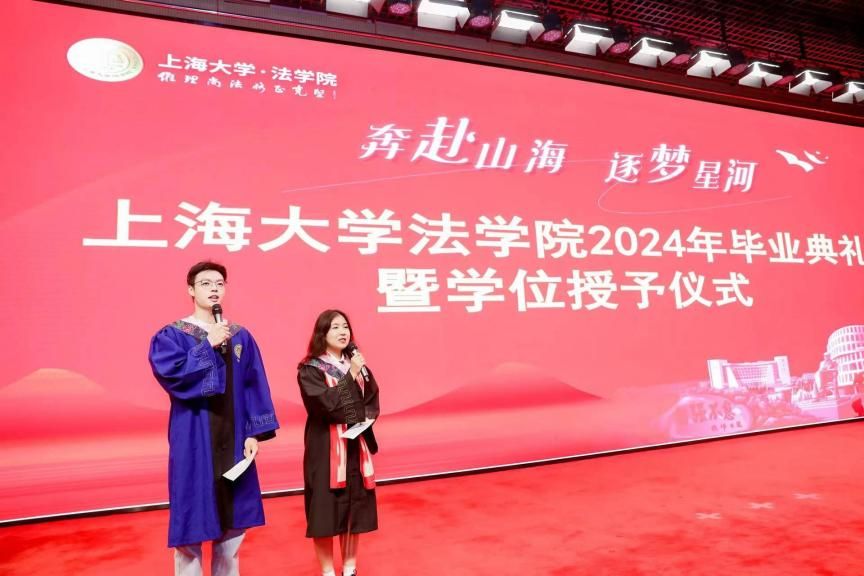 在毕业典礼暨学位授予仪式上举行毕业生法律人宣誓仪式,是法学院坚持多年的好传统。在2024年毕业生法律人宣誓仪式环节,上海市优秀毕业生、2024届硕士研究生代表肖静带领全体毕业生再一次重温法律人誓言,表达了毕业生们坚守法律人理想的坚定信念。