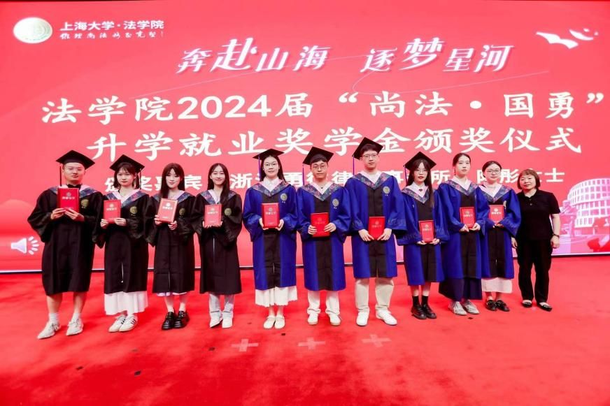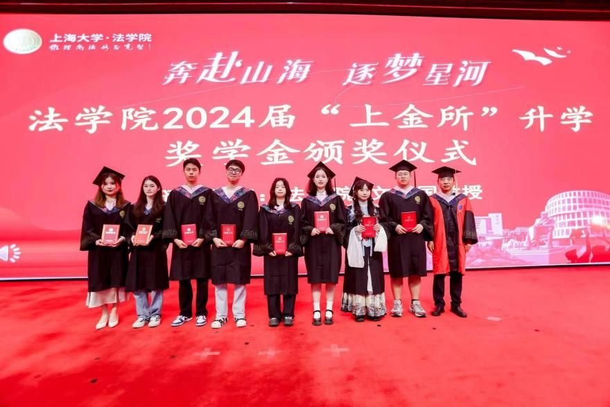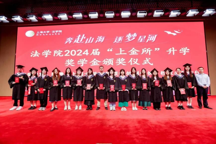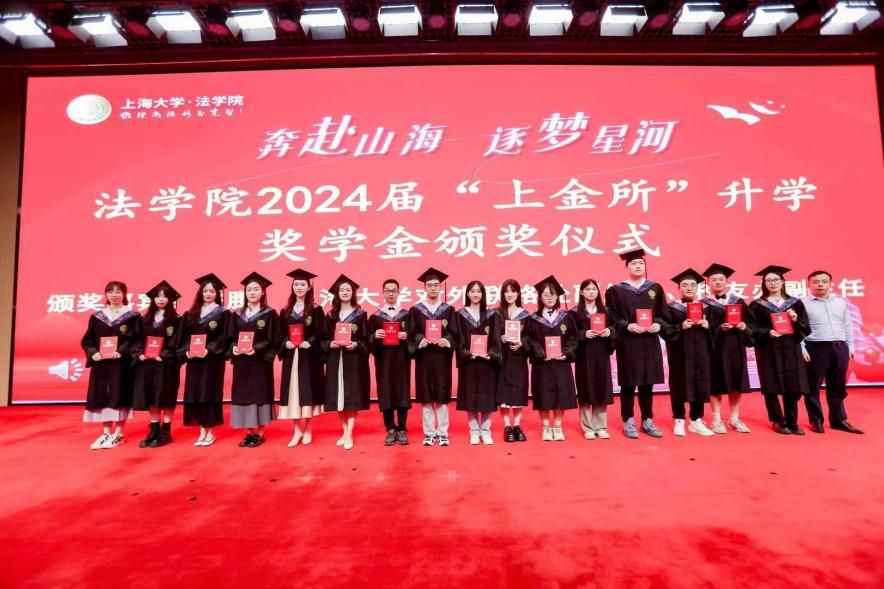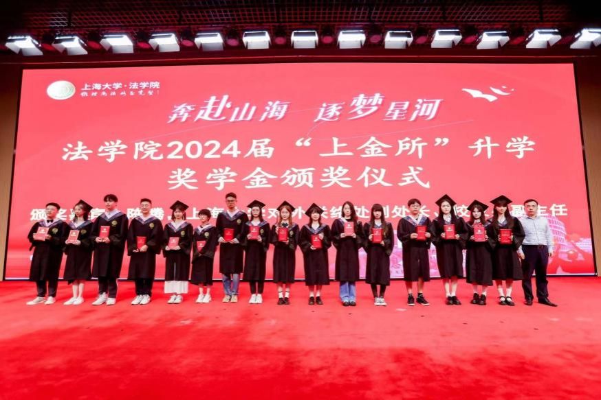在2024 年“上金所”升学奖学金颁奖仪式上,sunbet申搏官方网站对外联络处副处长、校友办副主任陈腾,法学院文学国教授共同为获得“上金所升学奖学金”的同学颁奖,预祝大家继续攀登法学高峰。