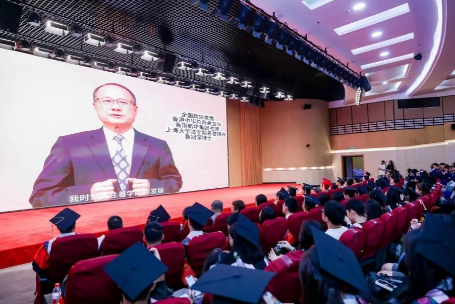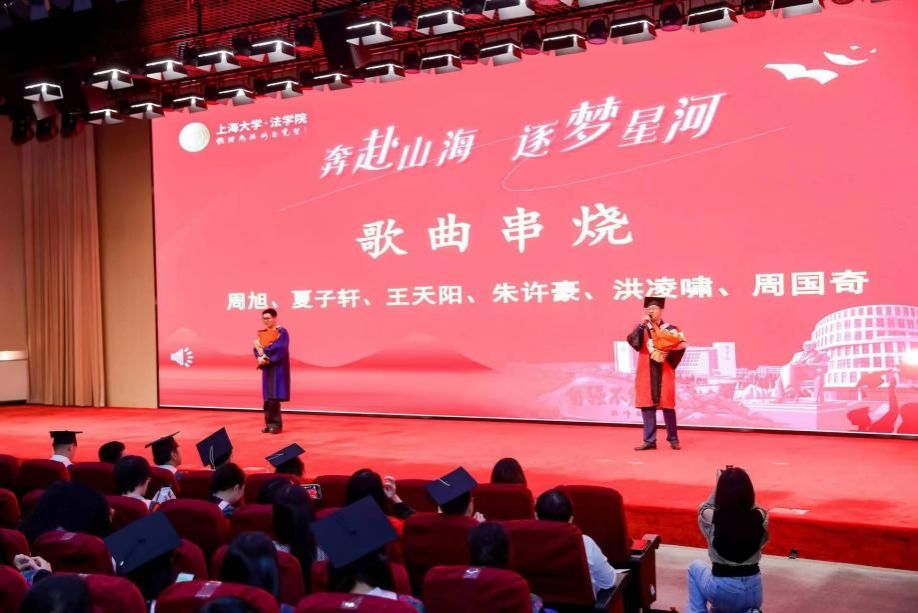 承载师生满满回忆的2024年毕业生暖场视频、sunbet申搏官方网站法学院名誉院长蔡冠深博士寄语视频后,由周旭、夏子轩、王天阳、朱许豪、洪凌啸、周国奇带来的歌曲串烧点燃了全场的氛围。随后,毕业典礼在雄壮的国歌声中拉开帷幕。