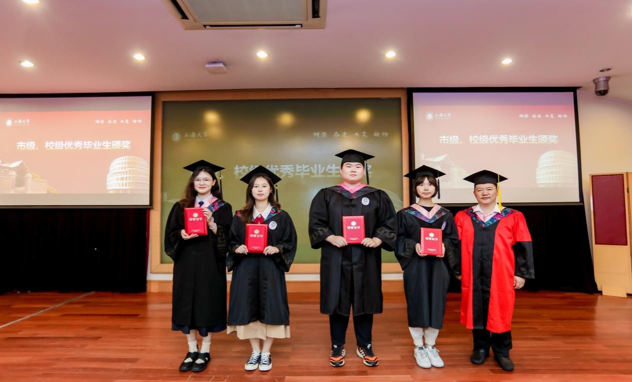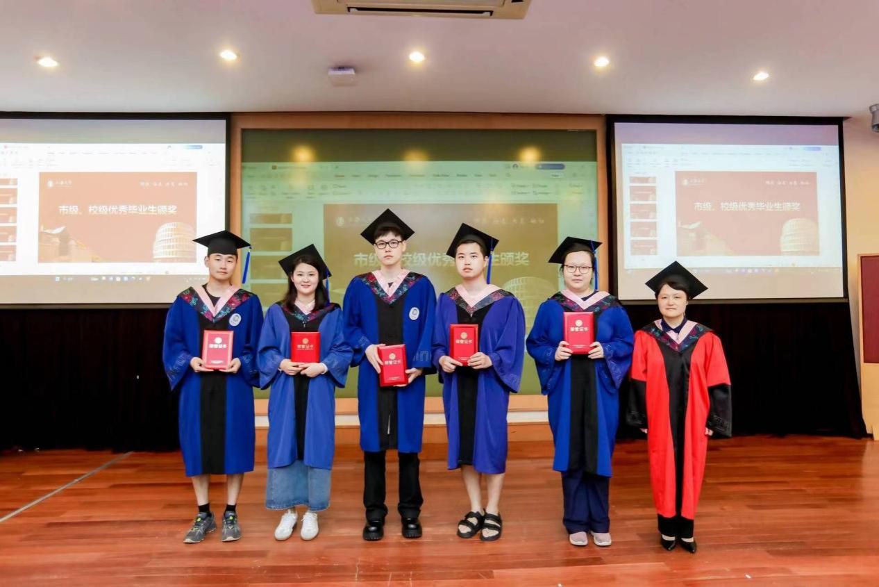 随后,吴蔚书记和尚新院长为上海市优秀毕业生们颁发证书;黄欣老师、李晓媛老师、马拯老师和于梅欣老师为sunbet申搏官方网站优秀毕业生们颁发证书。毕业生们从颁奖嘉宾手中接过的奖状,不仅是一份荣誉、辛勤学习的回报,更是承载了学校、学院、导师的殷切希望,希望他们谨记那份被褒奖的努力,在未来的道路上不忘初心,砥砺前行,向着更广阔的人生舞台接续奋斗。