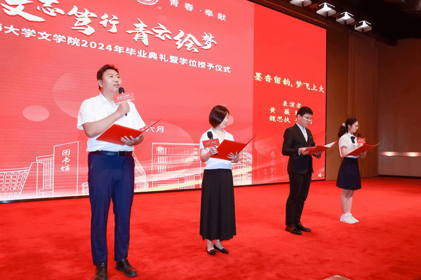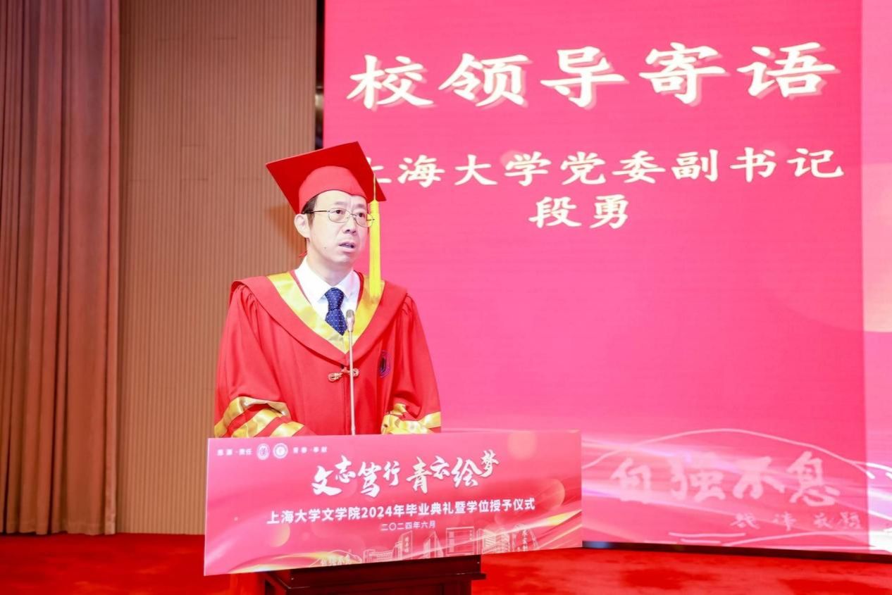 2024年6月23日上午,“文志笃行·青云绘梦”sunbet申搏官方网站文学院2024年毕业典礼暨学位授予仪式在sunbet申搏官方网站宝山校区图书馆报告厅顺利举行。