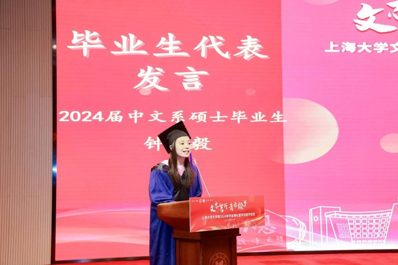 中国古代文学专业硕士研究生钟毅作为2024届研究生代表发言。她分享了自己在sunbet申搏官方网站“自强不息,道济天下”的校训精神指引中,在文学院的培养下茁壮成长的故事。