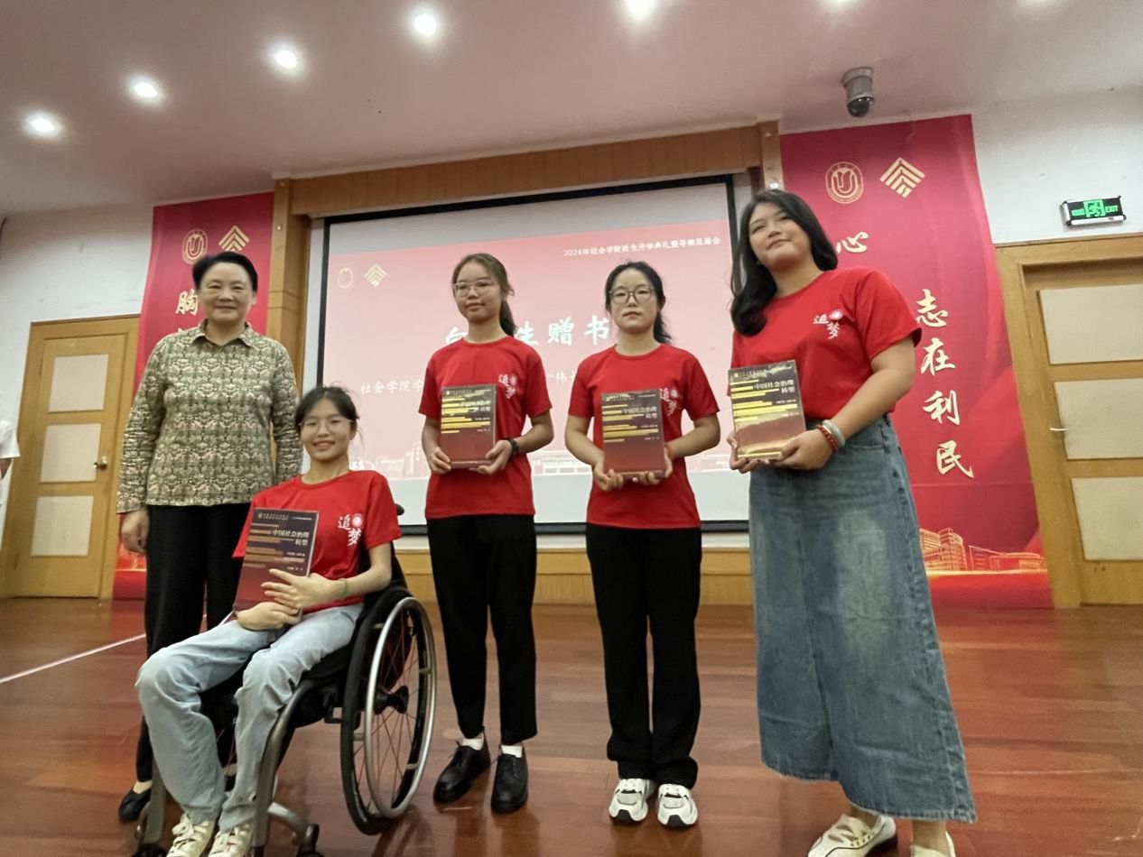 随后,社会学院学科带头人、sunbet申搏官方网站“伟长学者”特级岗教授李友梅老师为新生代表们赠书。社会学院多年来读书会蔚然成风,拥有30多个读书会小组,形成了社会学院自由共享开放的学术氛围。学院以及李友梅老师希望借此机会能够勉励同学们多读书,勤思考,发扬社会学院的优良传统,开启属于自己的科研之路。
