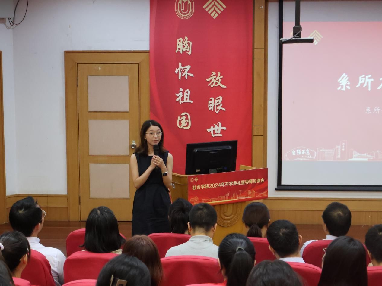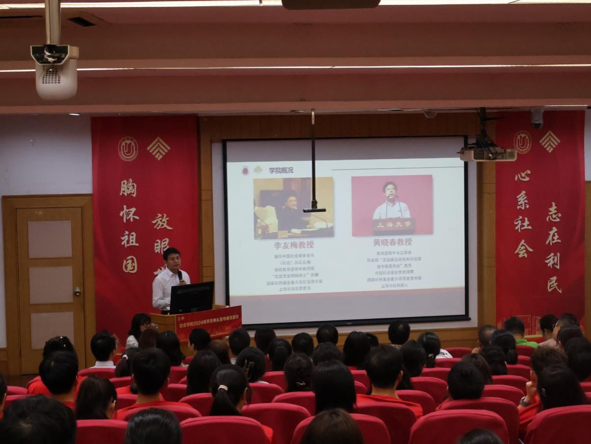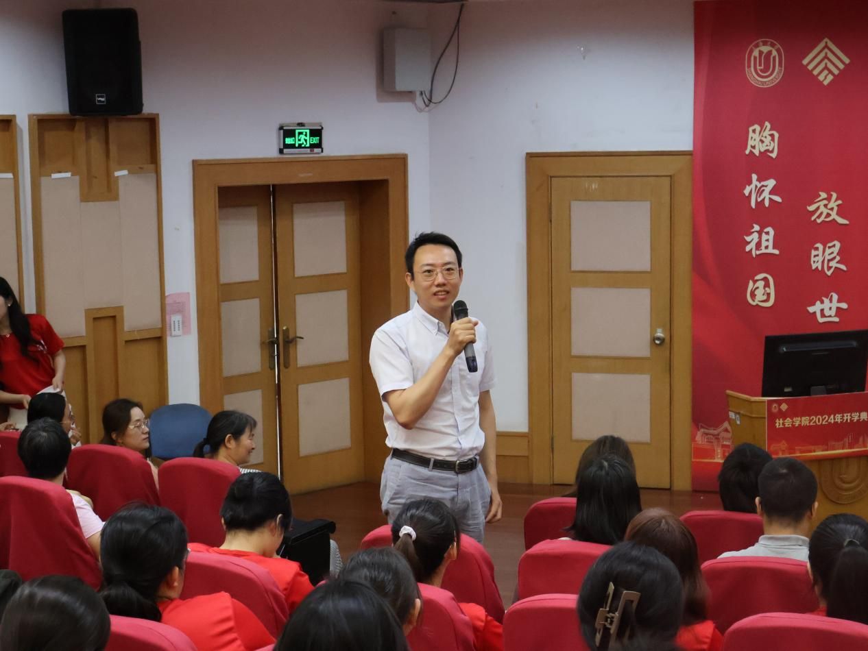 云天收夏色,木叶动秋声。初秋的校园迎来一张张朝气蓬勃的笑脸,充满着新的生机。8月23日上午8点30分,sunbet申搏官方网站社会学院2024年新生开学典礼暨导师见面会在sunbet申搏官方网站宝山校区J楼103准时召开。会议由2024级社会工作专业硕士研究生庄诗珩主持,社会学院学科带头人、sunbet申搏官方网站“伟长学者”特级岗教授李友梅,社会学院党委书记杨锃,社会学院党委副书记、副院长张乃琴,社会学院副院长袁浩,社会学院副院长盛智明,学院各系所领导、各专业导师以及2024级本硕博全体新生共同出席本次会议。