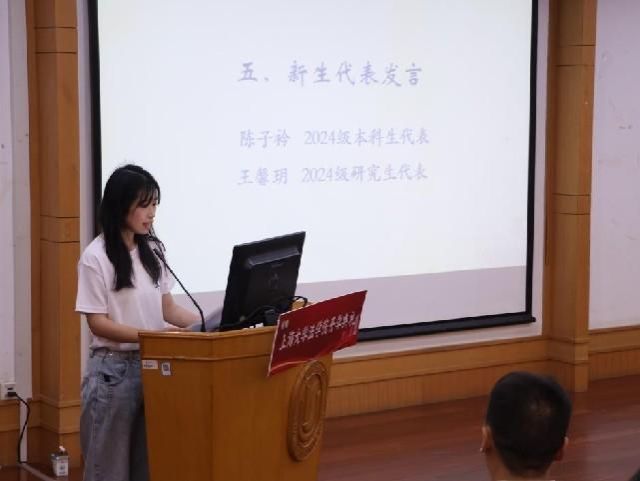 2024级本科生陈子衿、2024级研究生王馨玥作为新生代表发言。两位新生代表的精彩发言谈及自己对新环境的初步感受,以及对大学、研究生生活的期待和憧憬,回顾过去,展望未来,在法学院相聚,共同绘制新篇章的蓝图。