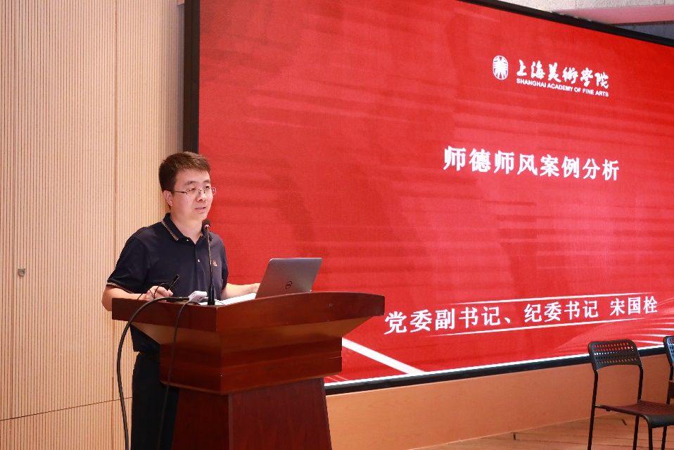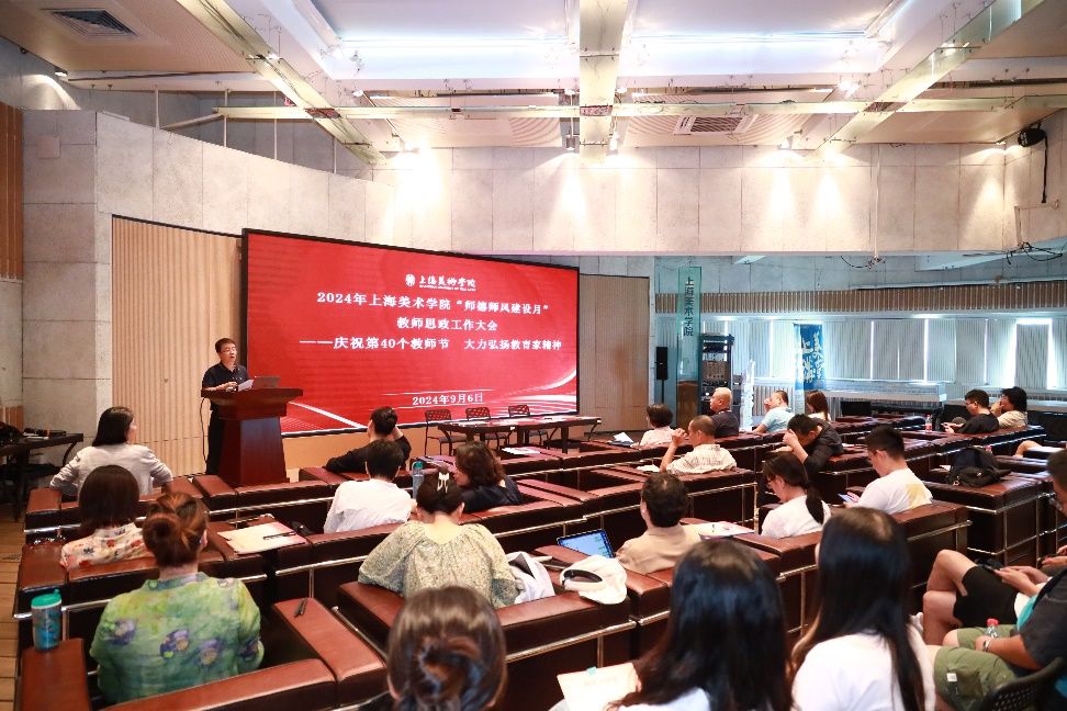 为深入学习贯彻党的二十大和二十届二中、三中全会精神,在迎接第40个教师节之际,sunbet申搏官方网站上海美术学院以“大力弘扬教育家精神,加快建设教育强国”为主题,于9月6日上午开展2024年“师德师风建设月”活动暨教师思政工作会议。会议由学院党委副书记、纪委书记宋国栓主持,学院党政班子成员、各系部教师代表、新老教师结对代表等共计60余人参加。