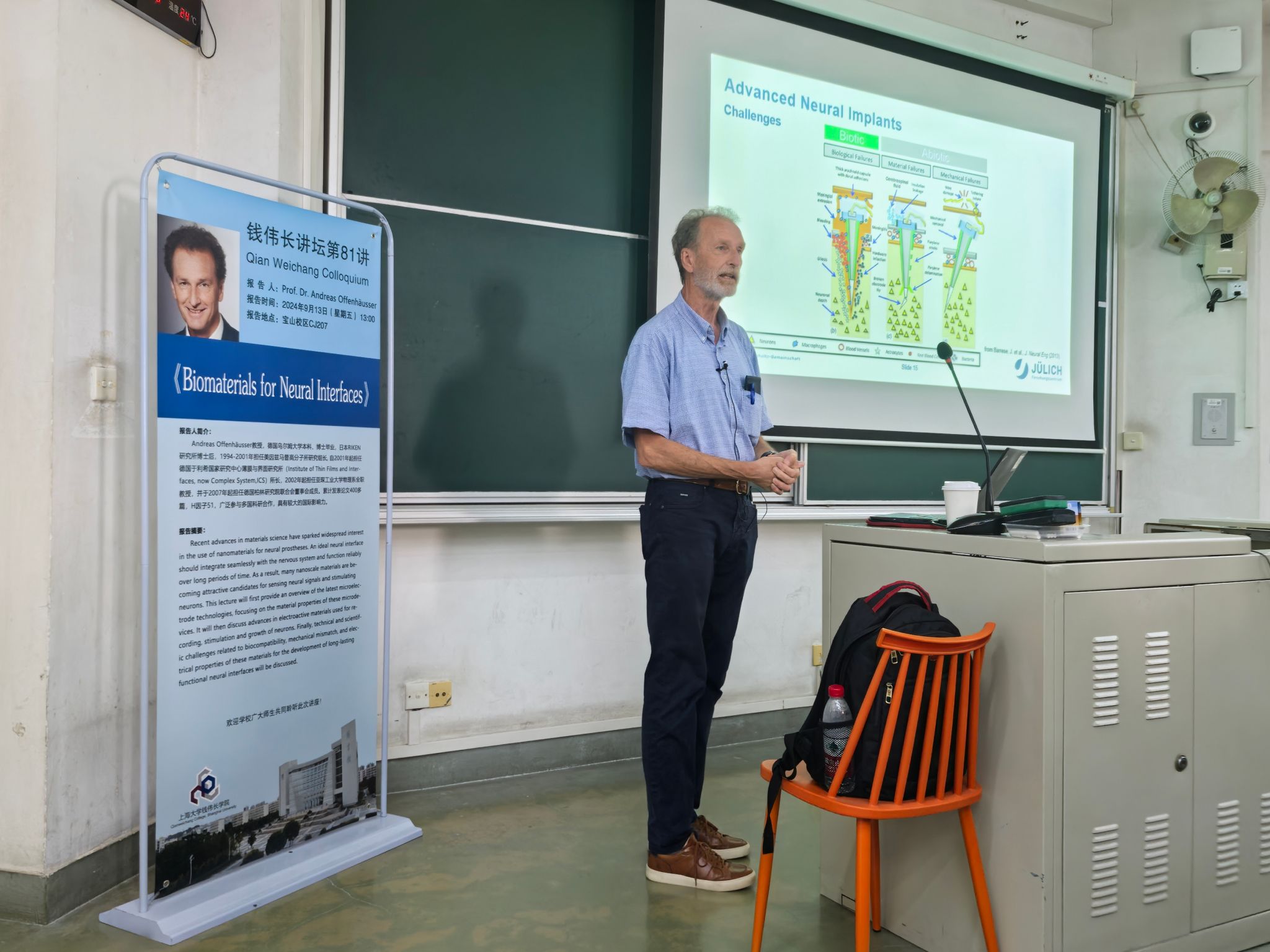 9月13日下午,钱伟长讲坛第81讲《Biomaterials for Neural Interfaces》在sunbet申搏官方网站宝山校区CJ207会议室顺利举行,德国亥姆霍兹联合会-于利希研究中心Andreas Offenhäusser教授应邀作主题报告,活动由钱伟长学院党委书记冯凌燕教授主持。