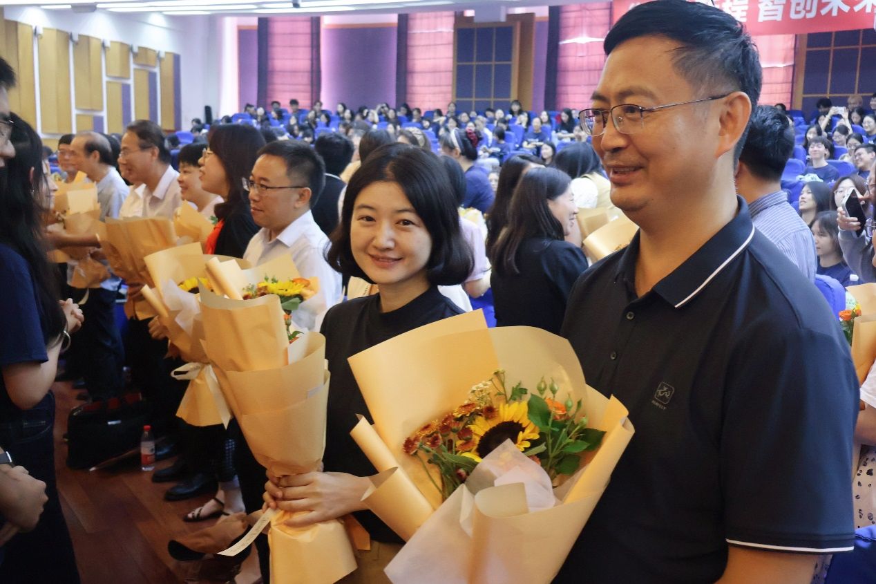 今年正值第40个教师节,在场同学们也向老师们献上鲜花,表达对老师们的感谢和祝福。
