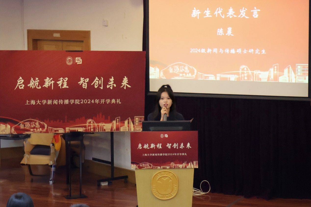 2024级新闻传播学专业硕士研究生陈晨进行了分享,她表达了对新闻传播学的热爱与对未来的憧憬。她认为,新闻传播不仅肩负着寻找真相的使命,也在时代变局中坚守着真理的力量。新闻传播学子应带着紧迫感和责任感,锻造专业能力,练就强大的内心,以应对各种挑战。真正发挥新闻传播的价值,要心怀高远,悉心研判。