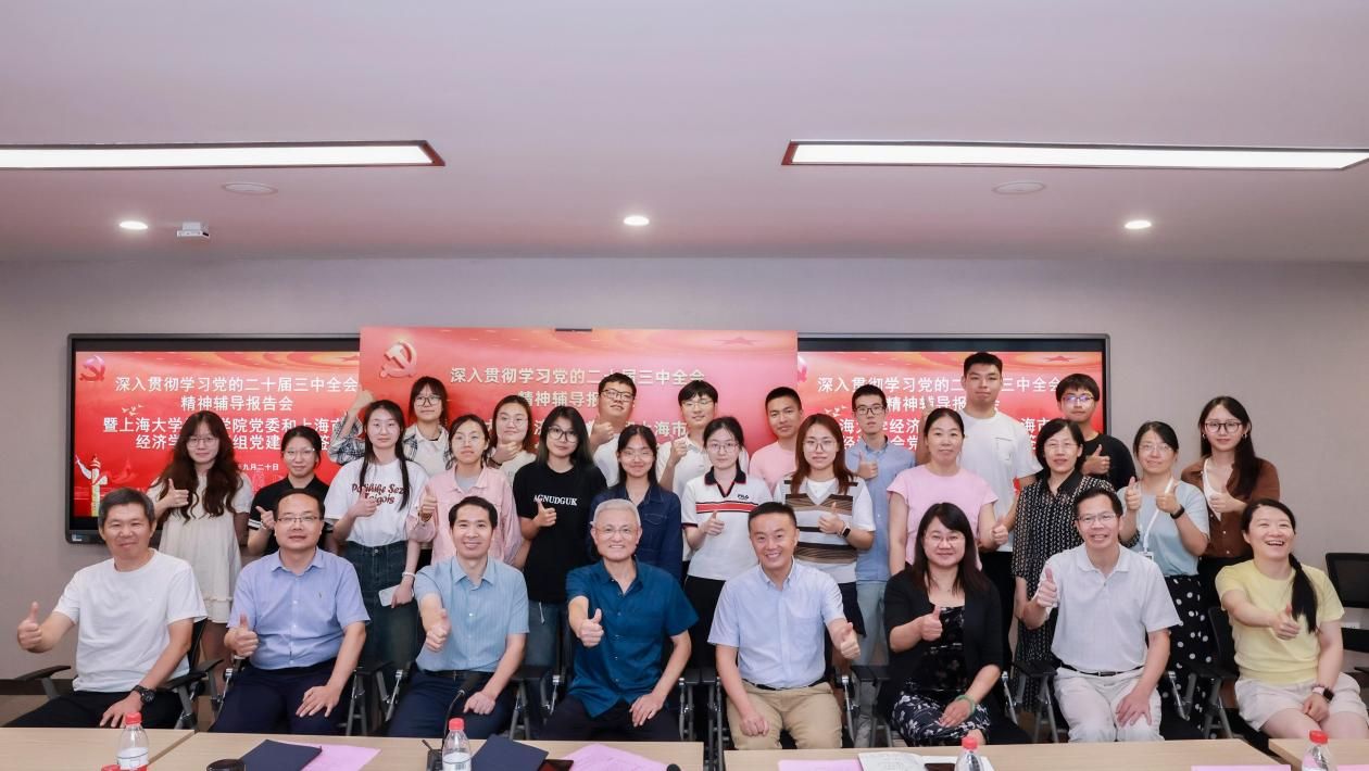 9月20日下午,sunbet申搏官方网站经济学院与上海市世界经济学会于经济学院580会议室举行“深入学习贯彻党的二十届三中全会精神辅导报告会”,并签订合作协议。参加本次会议的人员有上海市世界经济学会会长、党工组负责人、复旦大学教授罗长远,副会长、同济大学教授石建勋,副会长、sunbet申搏官方网站经济学院教授何树全,秘书杨慧倩;sunbet申搏官方网站经济学院党委书记尹应凯,党委副书记、常务副院长殷凤,党委副书记、副院长冯玉鑫,经济系党支部书记、副系主任卢正刚,金融系党支部书记、副系主任刘建桥,产经中心党支部书记、副系主任乌力吉图以及师生代表。