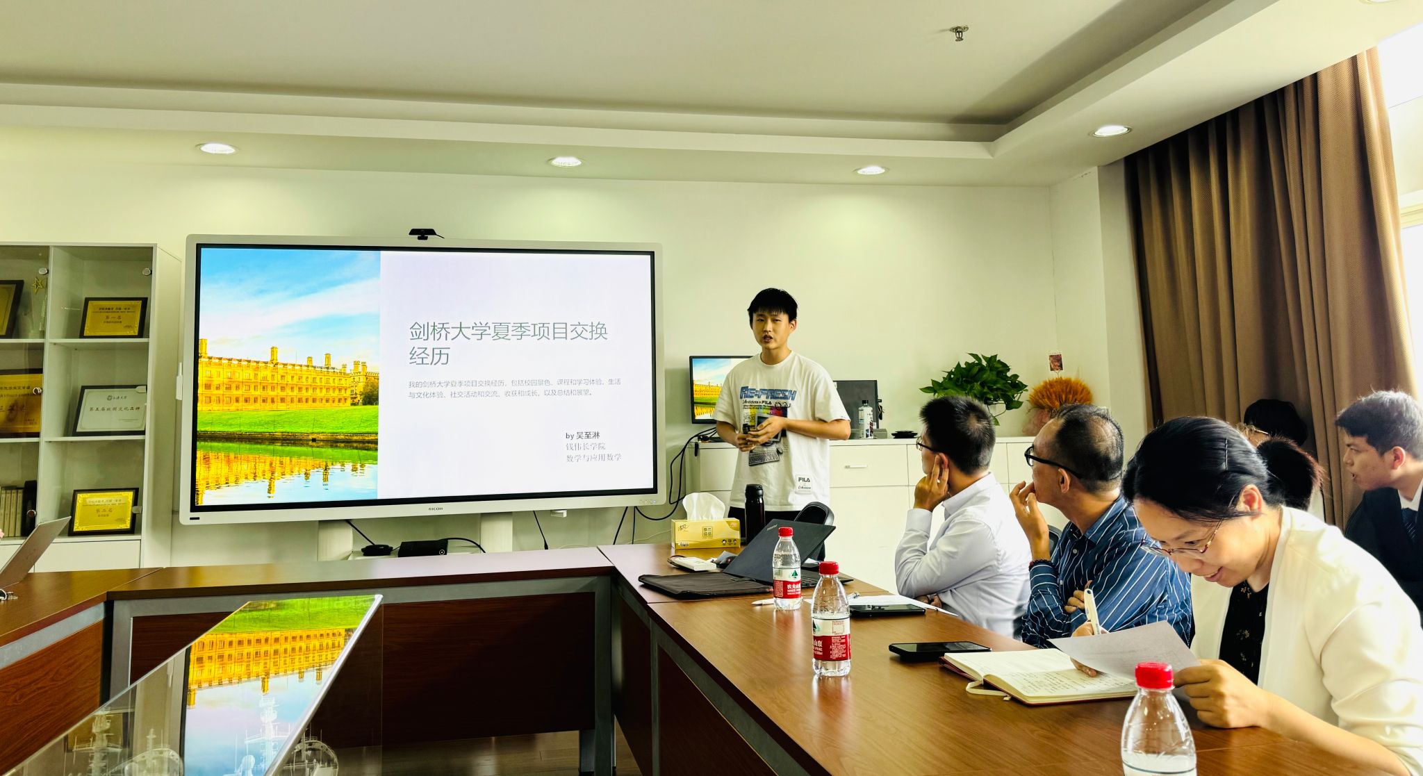随后,参加2024年剑桥大学项目的22位同学进行了答辩展示,同学们用PPT、Vlog等多种方式从课程安排、项目情况、生活感受、文化体验、团队合作、自我成长与收获等多个维度展开讲述属于他们的剑桥故事。例如,有同学提到自己学会了在小组成员都非常有个性时要如何开展合作,有的同学借此对自己进行了反思,明确了自己未来的职业或学术方向。每位同学都在答辩时充分展现了他们在剑桥大学两周的经历与感悟,也认真思考了自己存在的不足和差距,从而确立了更加明确和清晰的发展方向和未来规划,收获颇丰。在答辩展示过程中,几位老师都对学生的答辩展示给予了充分肯定,并提出了更深层次的问题与思考,帮助同学进一步梳理和深化项目所获,为以后更好地规划与学习奠定基础。