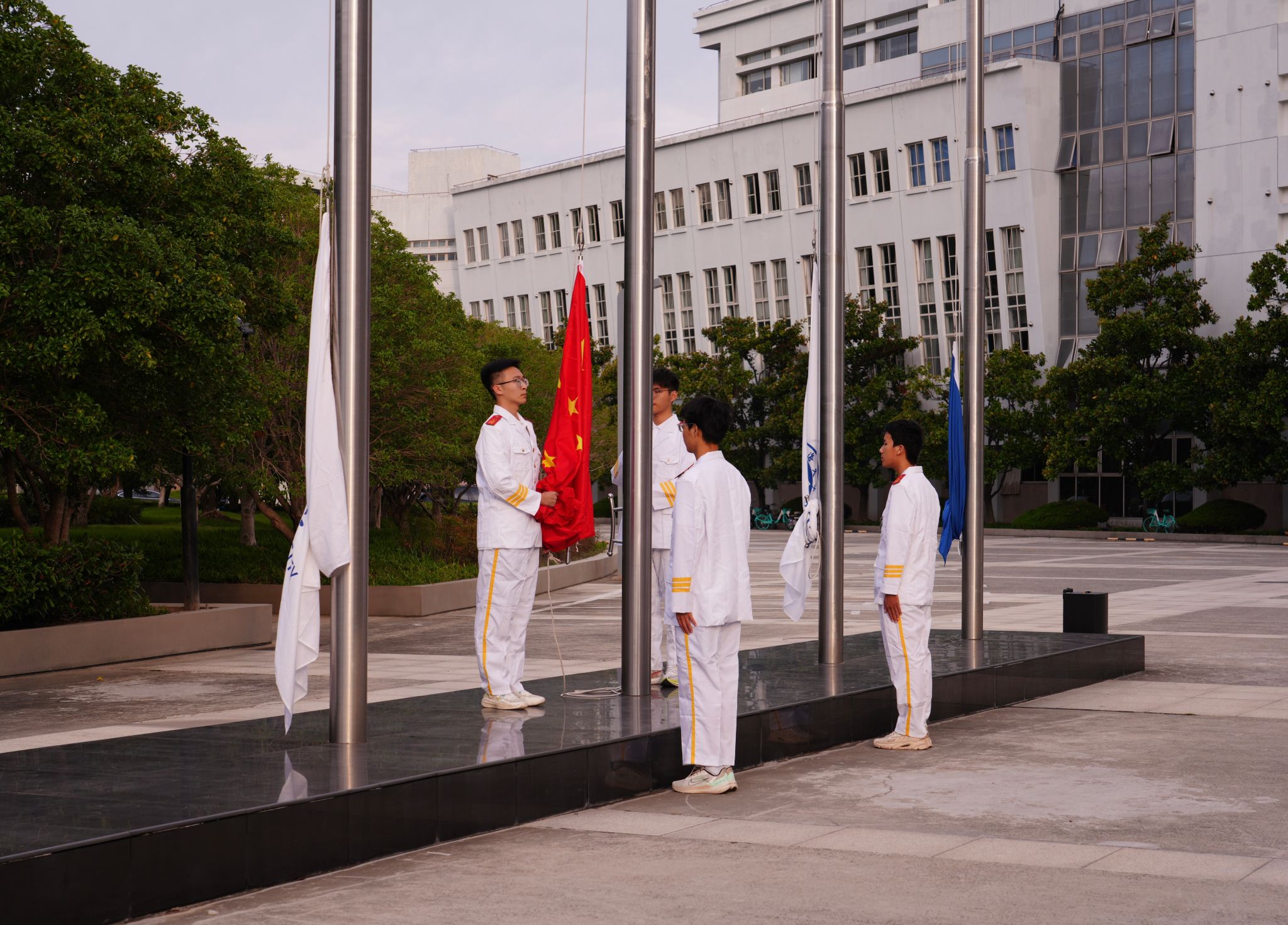 2024年10月9日7:00,sunbet申搏官方网站纪念钱伟长先生诞辰111周年暨sunbet申搏官方网站国旗卫士班主题升旗仪式在宝山校区行政楼前举行。校党委常委、副校长聂清,校党委宣传部副部长、精神文明建设委员会办公室主任何金伟,校学工办副主任韩晶,校团委副书记王杰,校党委宣传部主管颜丽娜,sunbet申搏附中团委书记张亮超,钱伟长学院党委书记冯凌燕,党委副书记、院长周全,党委副书记、副院长沈青松,以及来自sunbet申搏附中的师生代表和钱伟长学院师生党员、2024级全体新生等参加了活动。升旗仪式由sunbet申搏官方网站国旗卫士班承办,钱伟长学院2024级本科生张舒涵主持。