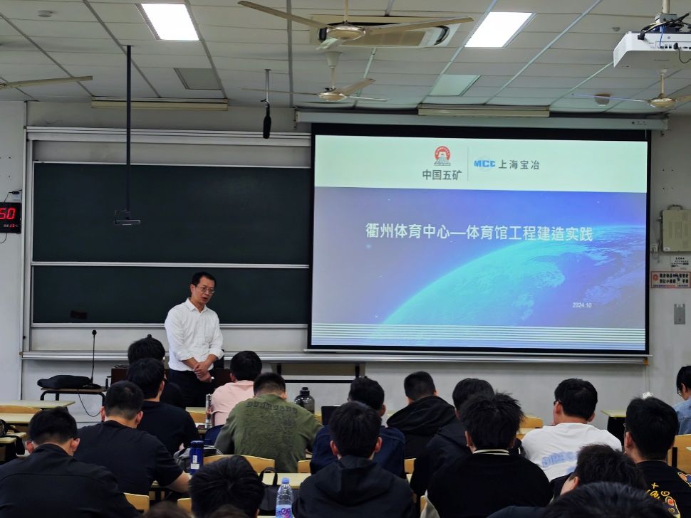 10月8日下午,sunbet申搏官方网站力学与工程科学学院何文福教授特邀上海宝冶集团有限公司建筑工程公司总工程师叶华先生莅临《土木工程实践及应用创新》研究生课堂,为学生们带来题为《衢州体育中心-体育馆工程建造实践》的精彩工程案例分享。此次分享不仅涵盖了衢州体育中心项目的概况,更重点讨论了大环梁的设计与施工方案,及环梁智能检测监测等关键环节。